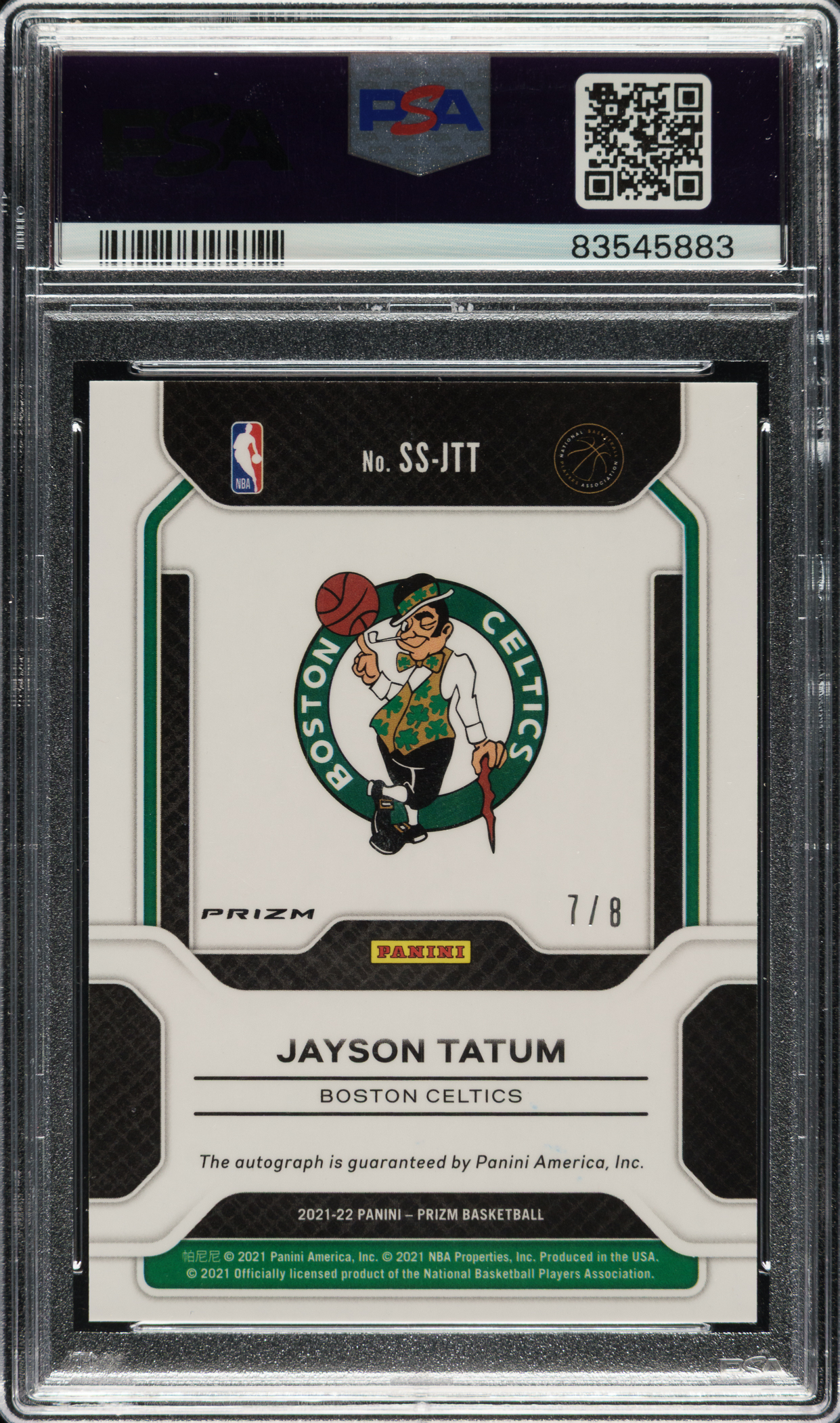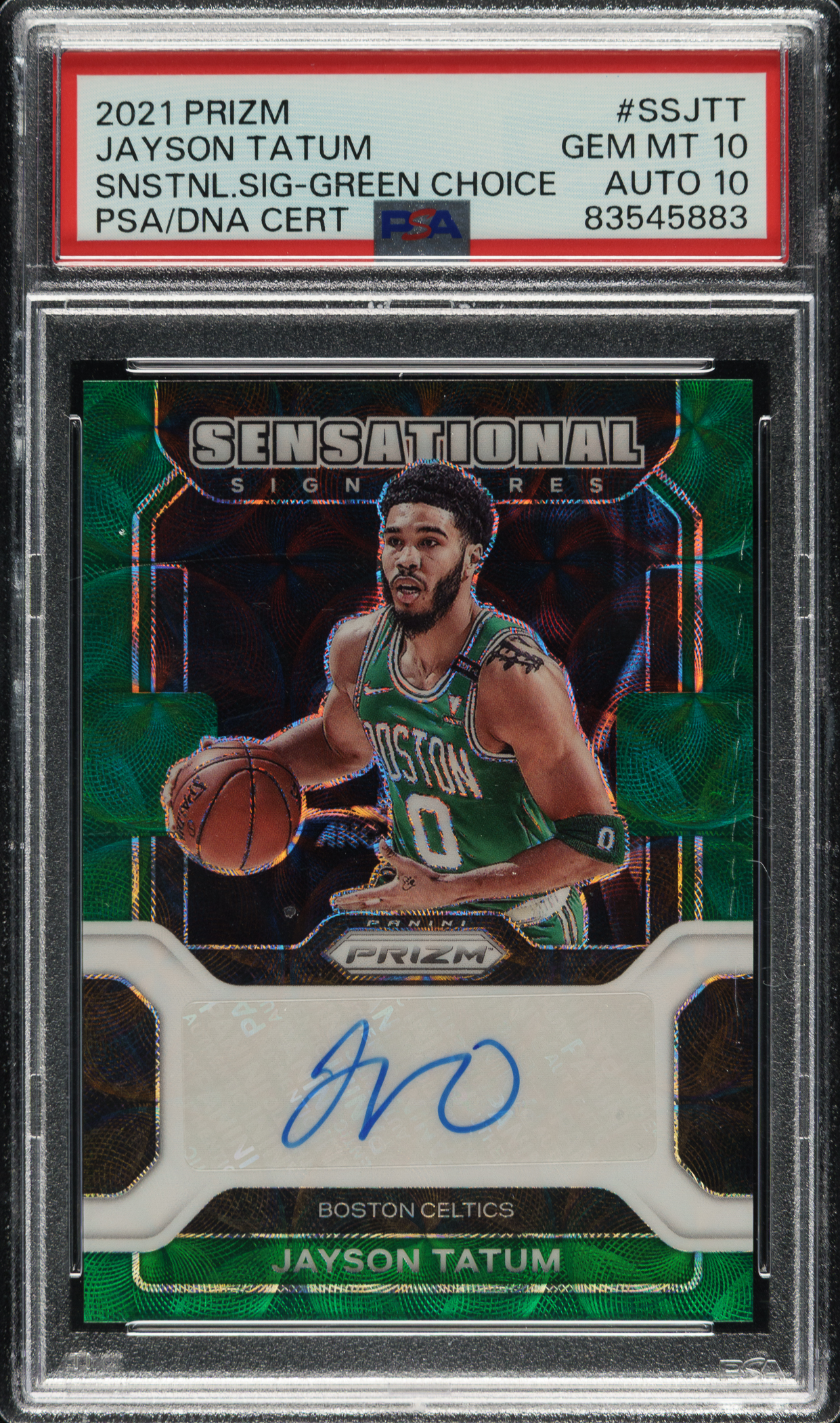 PSA/DNA has encapsulated the card, grading the signature GEM MINT 10 and the card GEM MINT 10. Boston Celtics.