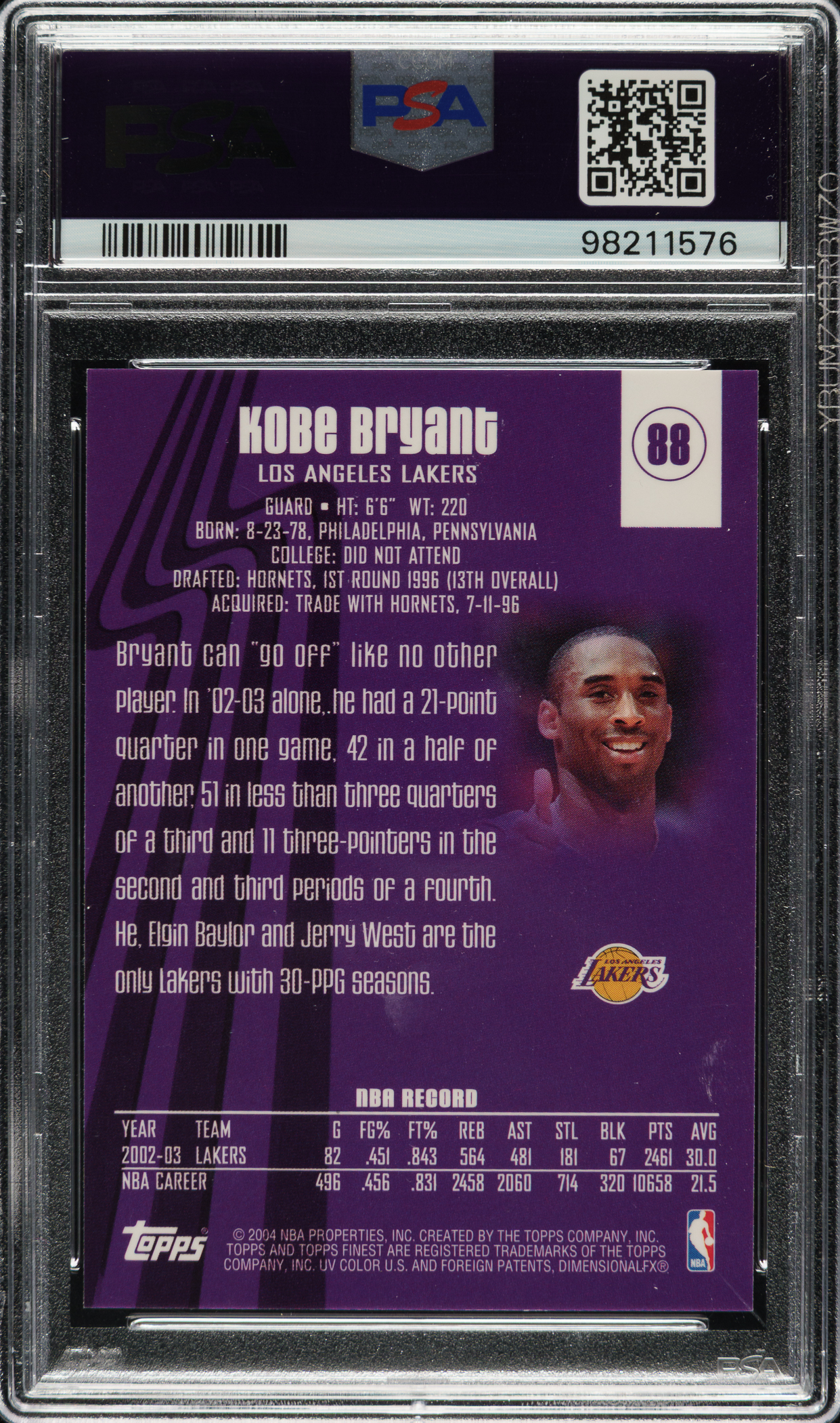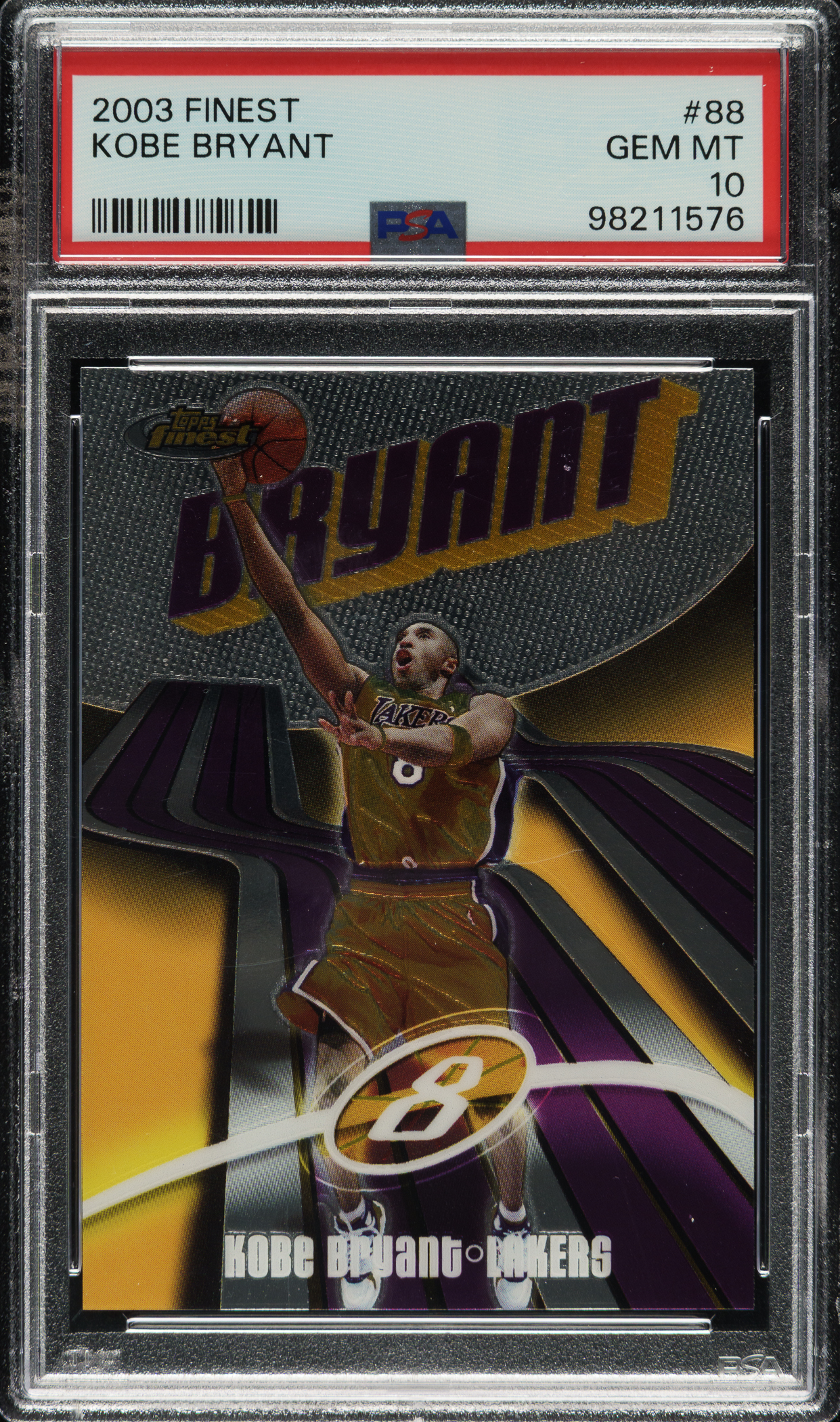 Graded GEM MINT 10 by PSA. Los Angeles Lakers basketball Hall of Famer Kobe Bryant.