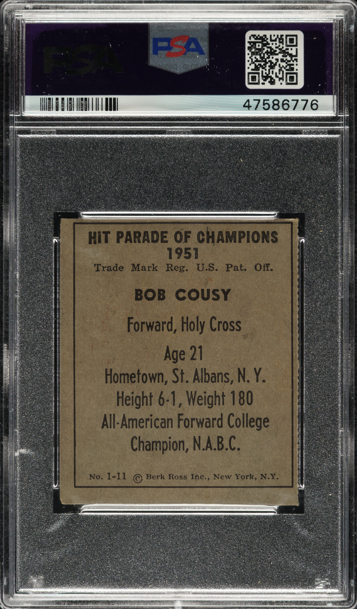 Graded EX-MT 6 by PSA. Boston Celtics basketball Hall of Famer Bob Cousy.