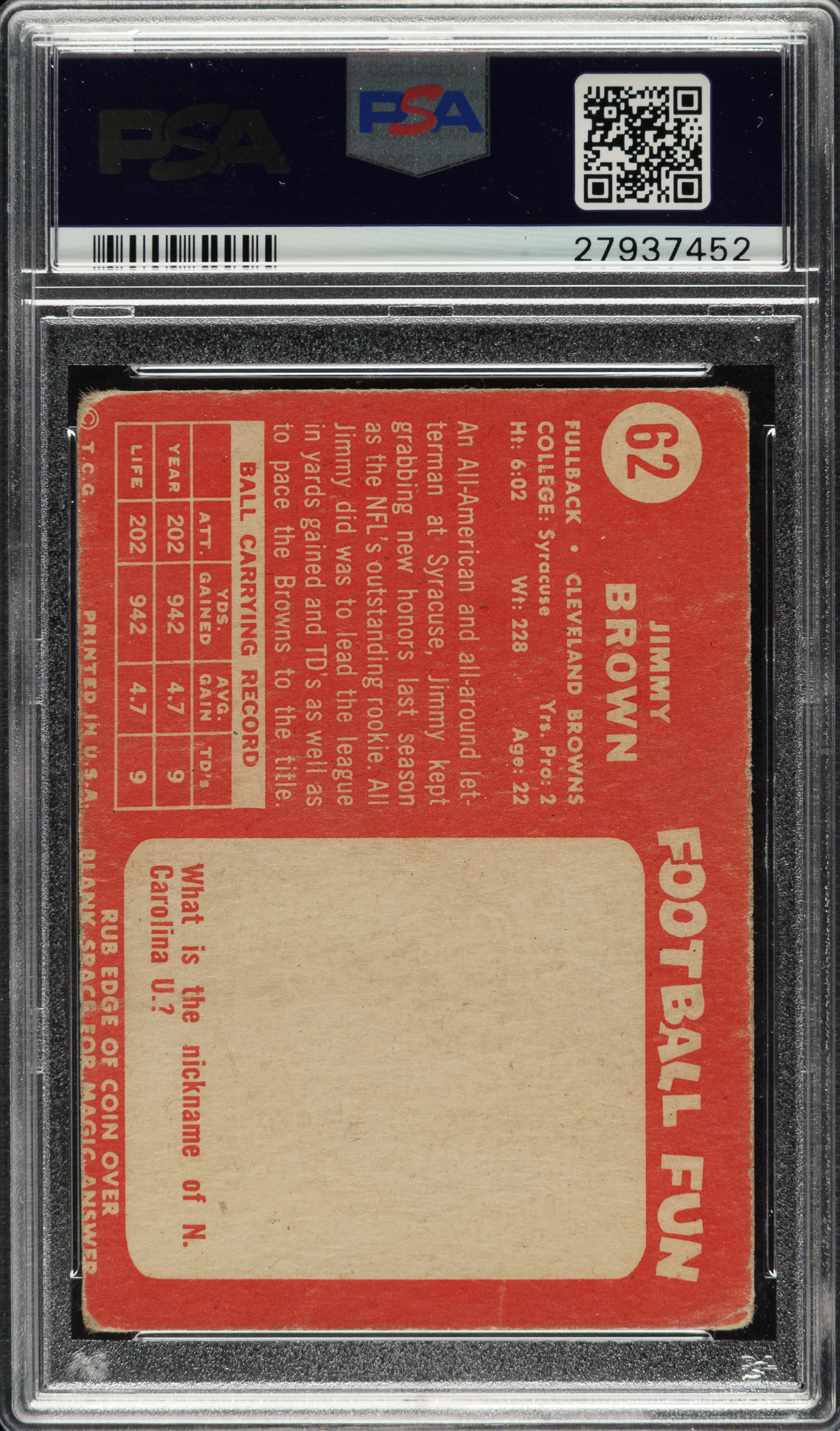 Graded GOOD 2 by PSA. Cleveland Browns Hall of Famer Jim Brown.