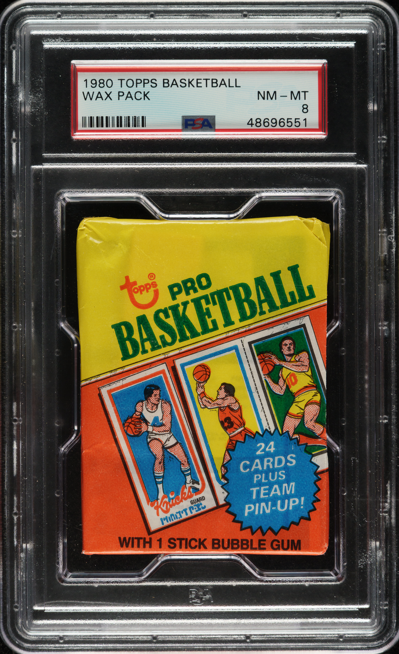Lot # 3357: 1980-1981 Topps Basketball Unopened Wax Pack PSA NM-MT 8 - Larry Bird and Magic Johnson Rookie Year