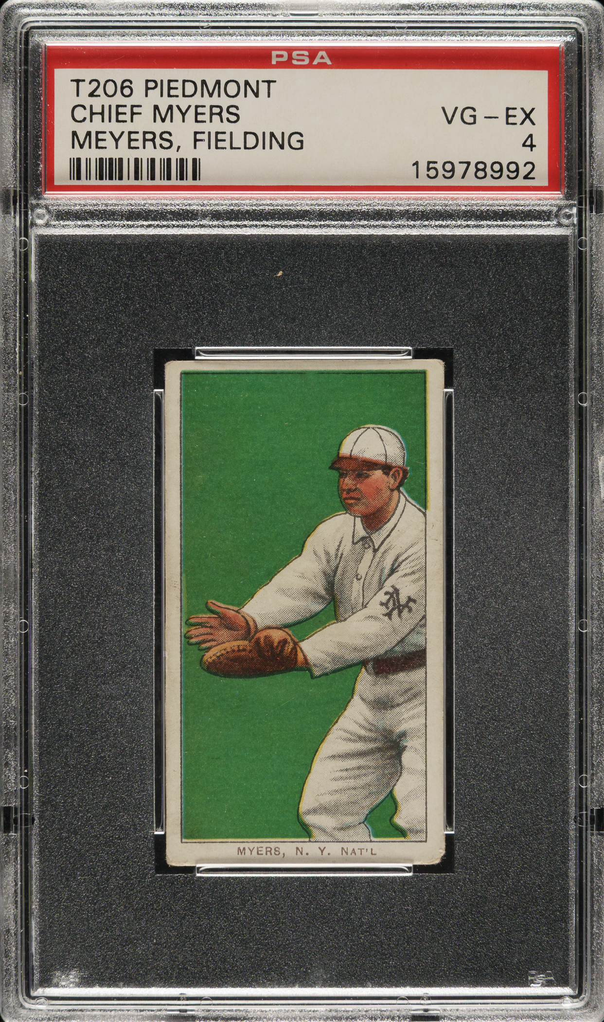 Lot # 554: 1909-1911 T206 White Border Chief Myers Fielding PSA VG-EX 4