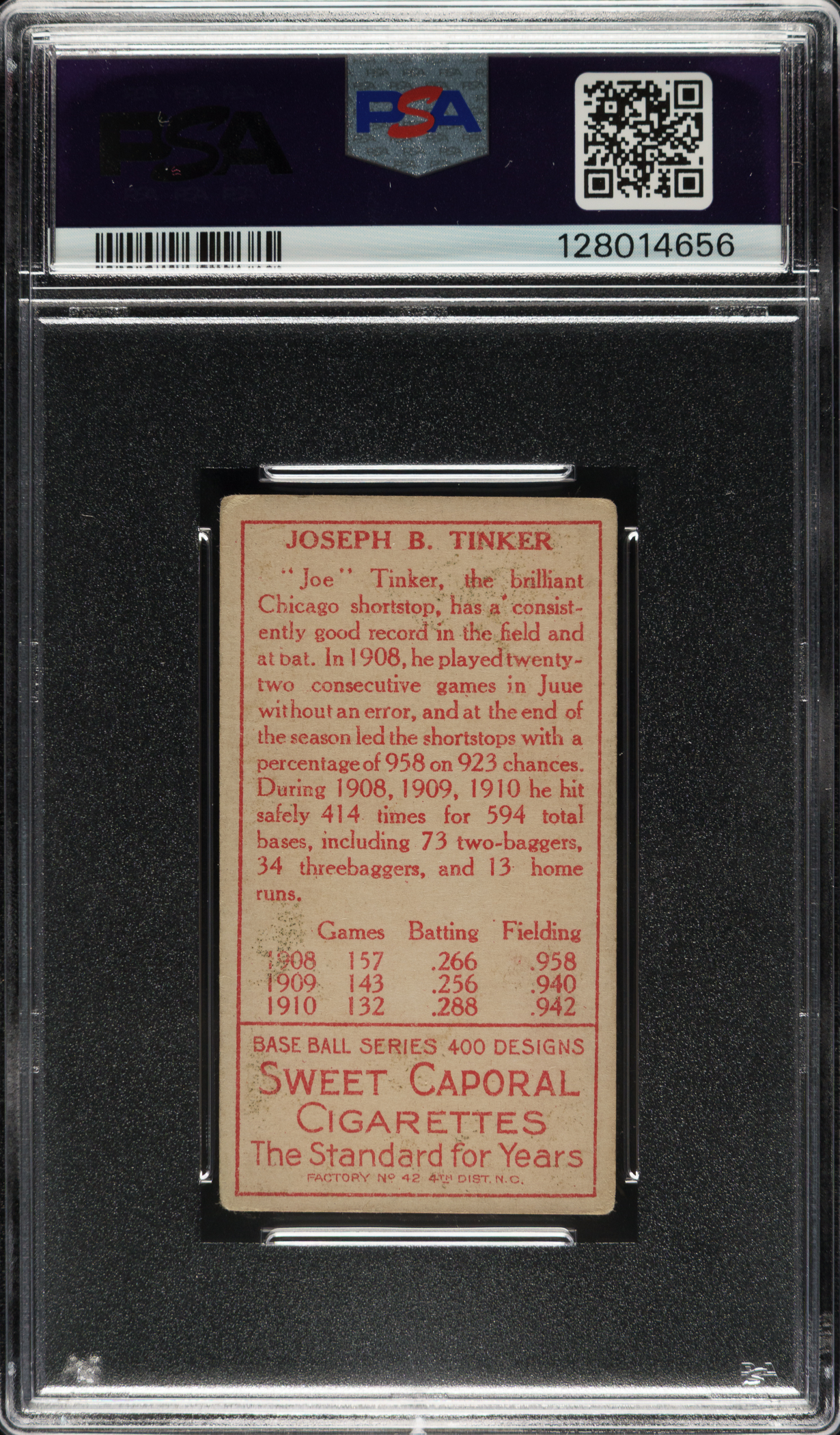 Graded GOOD 2 by PSA. Chicago Cubs Hall of Famer Joe Tinker.