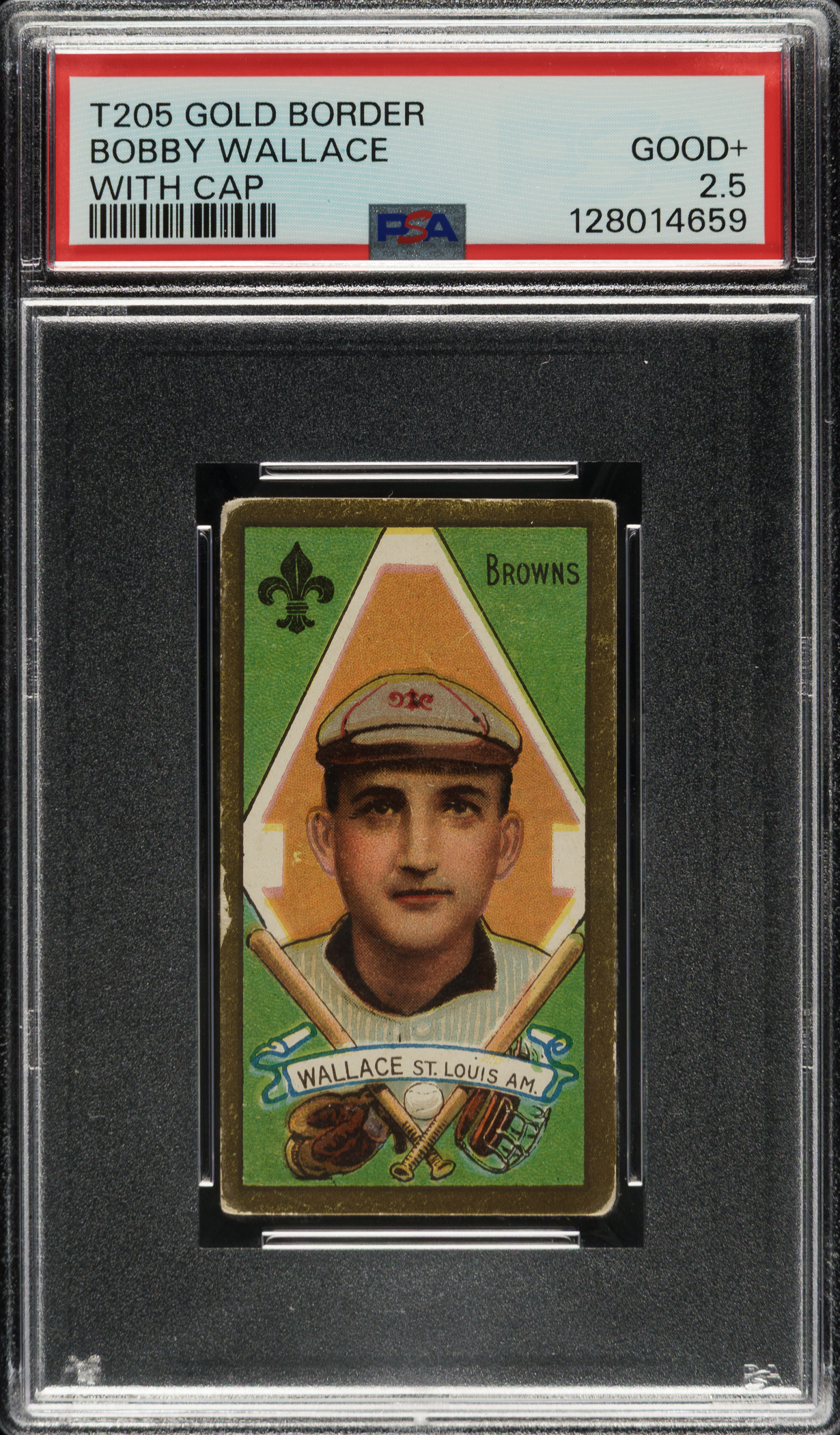 Lot # 805: 1911 T205 Gold Border Bobby Wallace with Cap PSA GOOD+ 2.5