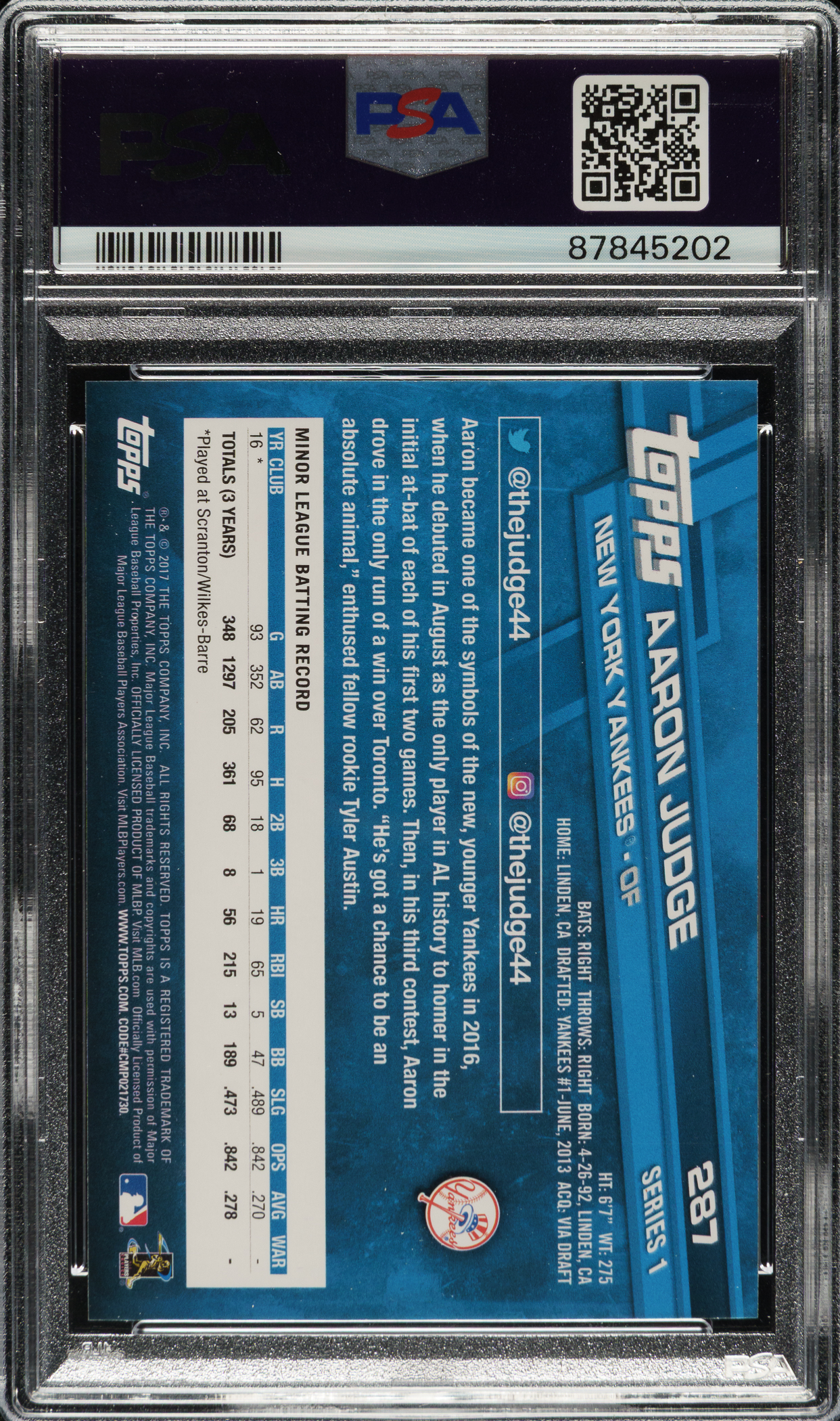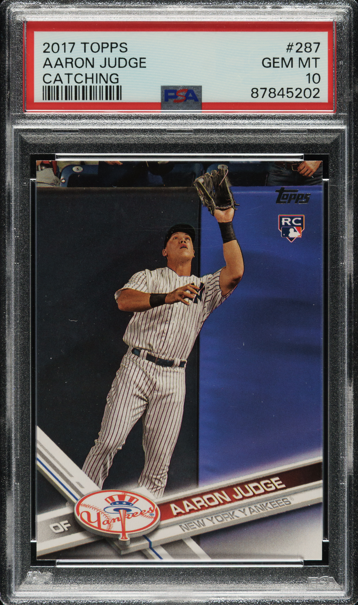 Lot # 2303: 2017 Topps #287 Aaron Judge Rookie Catching PSA GEM MINT 10