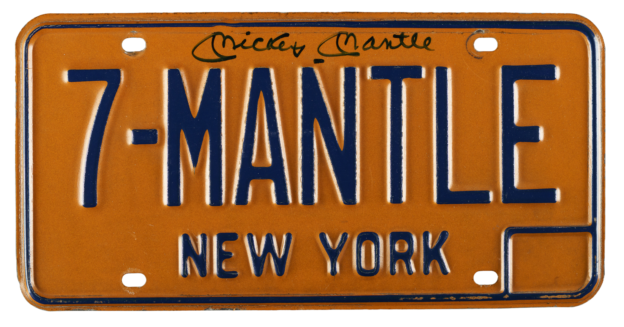 New York Yankees Hall of Famer Mickey Mantle signed license plate. Full LOA from Beckett. The size/weight of this item requires that there will be an additional shipping charge for this lot.