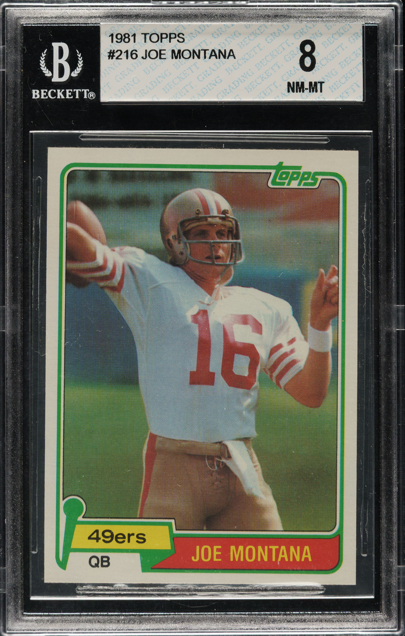 Graded NM-MT 8 by BGS. San Francisco 49ers football Hall of Famer Joe Montana.