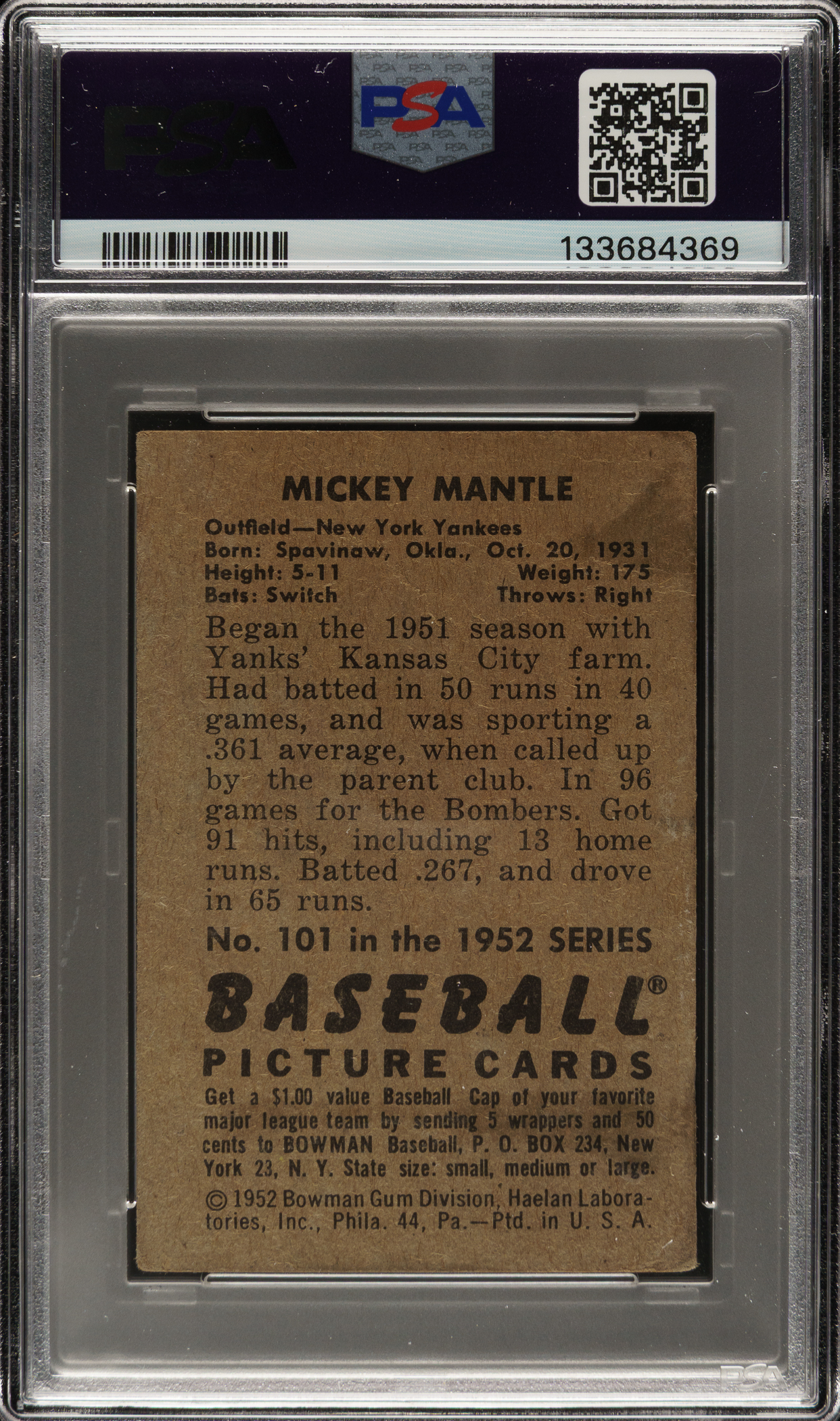 Graded POOR 1 by PSA. New York Yankees Hall of Famer Mickey Mantle.
