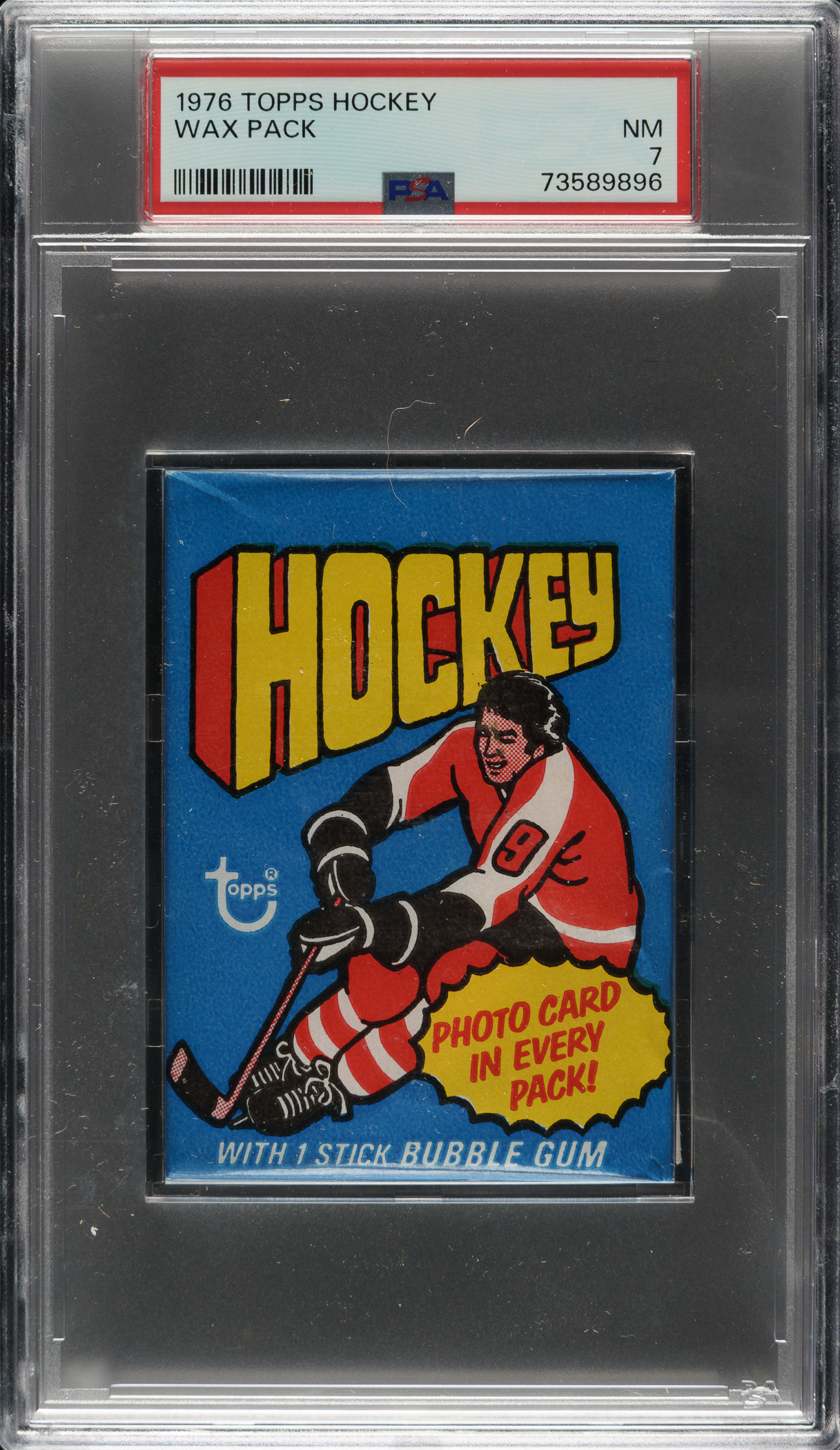 Lot # 2659: 1976-1977 Topps Hockey Unopened Wax Pack PSA NM 7