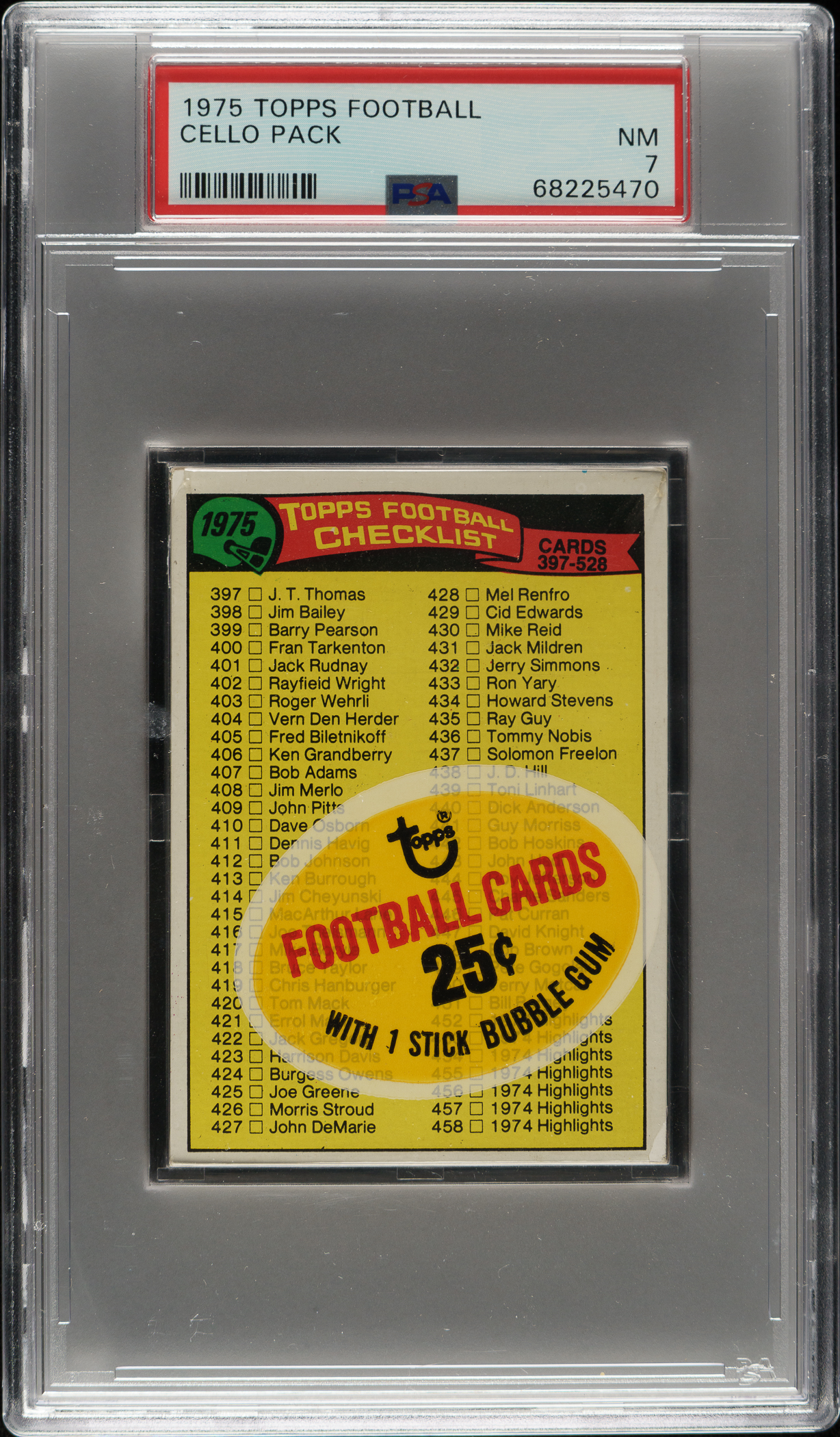 Lot # 2654: 1975 Topps Football Unopened Cello Pack PSA NM 7