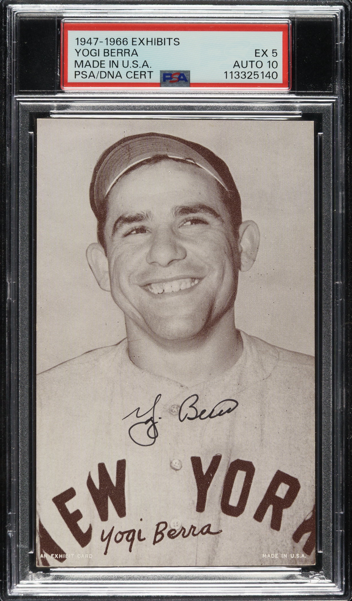 PSA/DNA has encapsulated the card, grading the signature GEM MINT 10 and the card EX 5. New York Yankees Hall of Famer Yogi Berra.