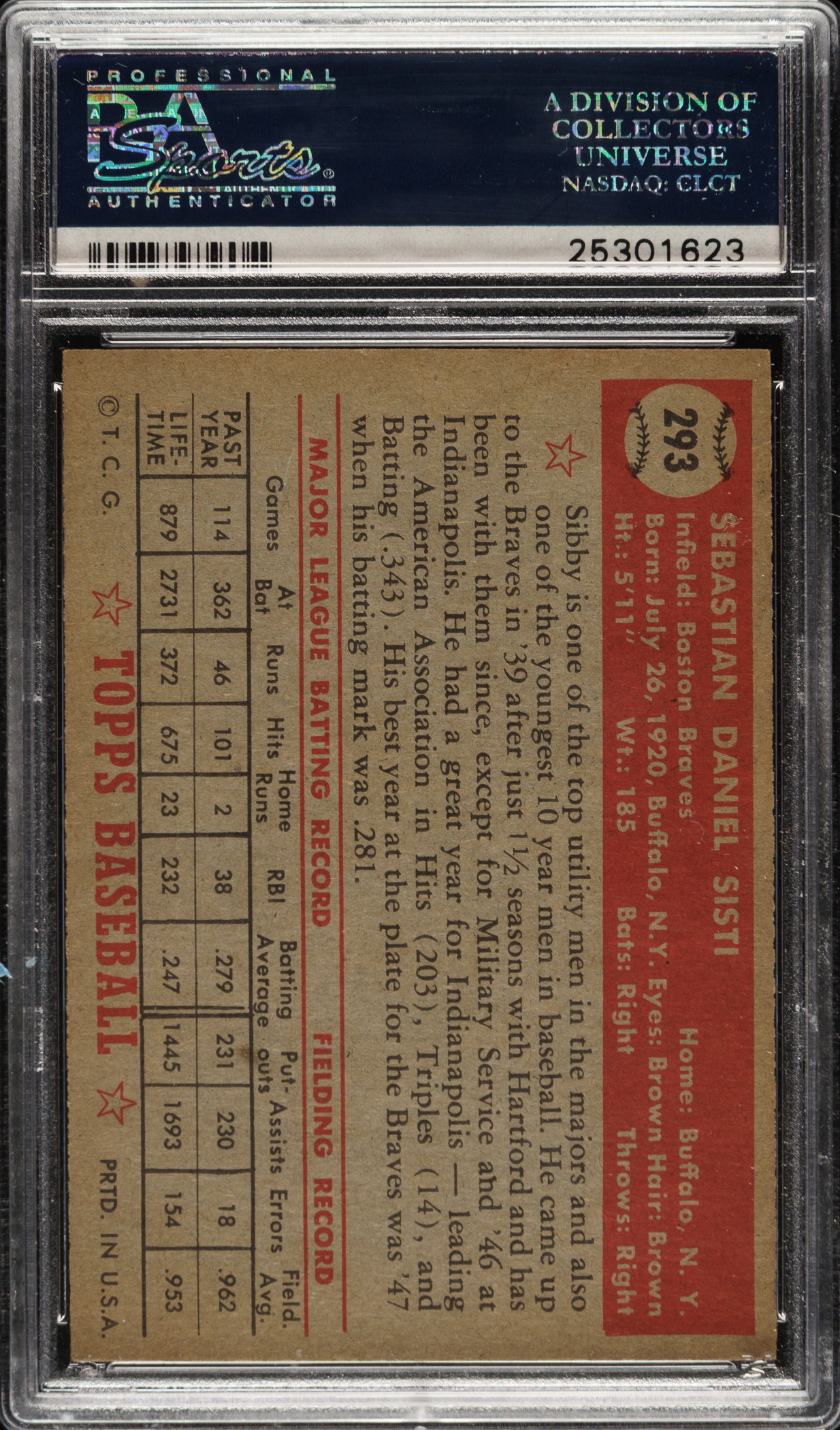 Graded EX-MT 6 by PSA. Boston Braves.