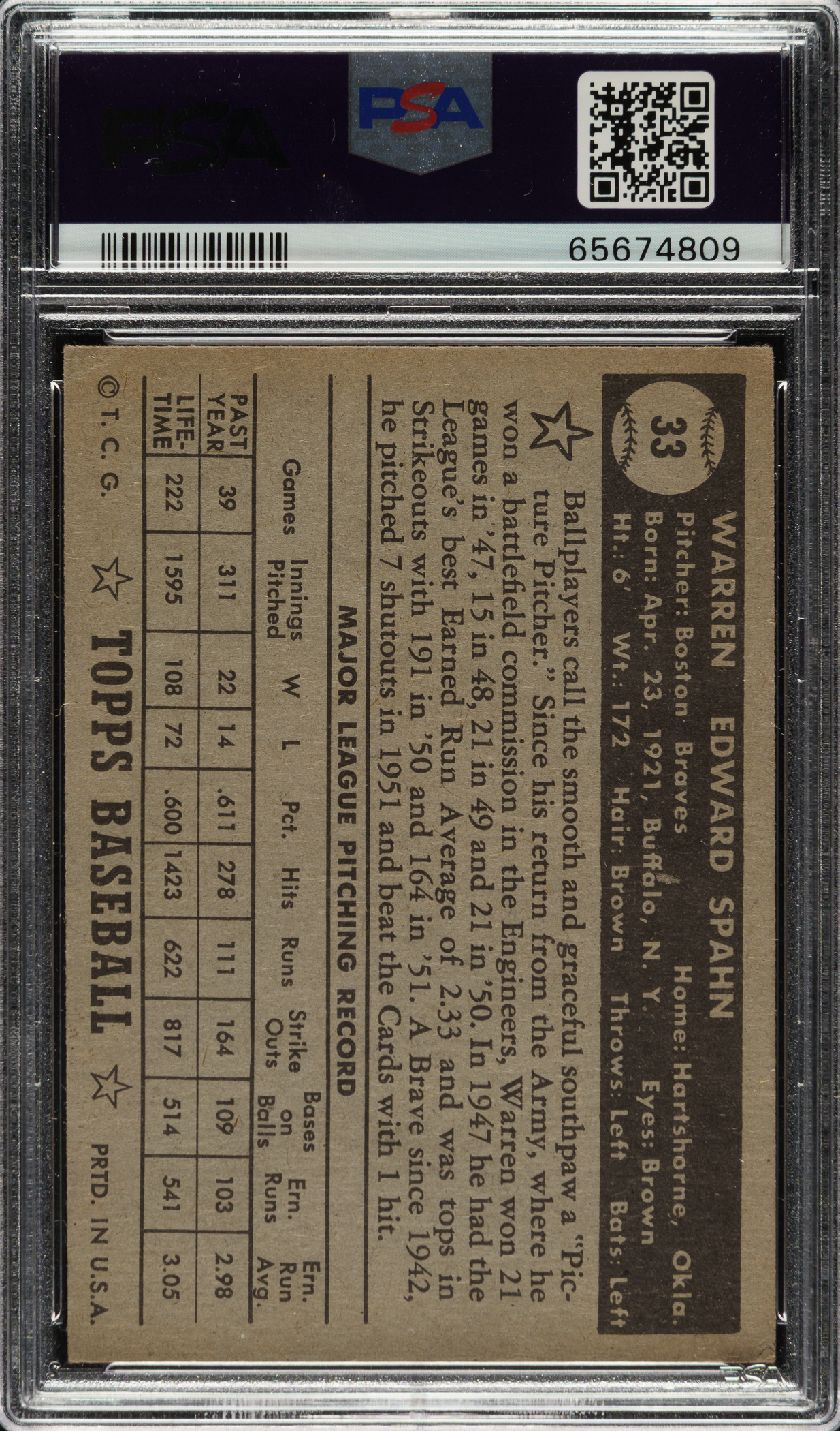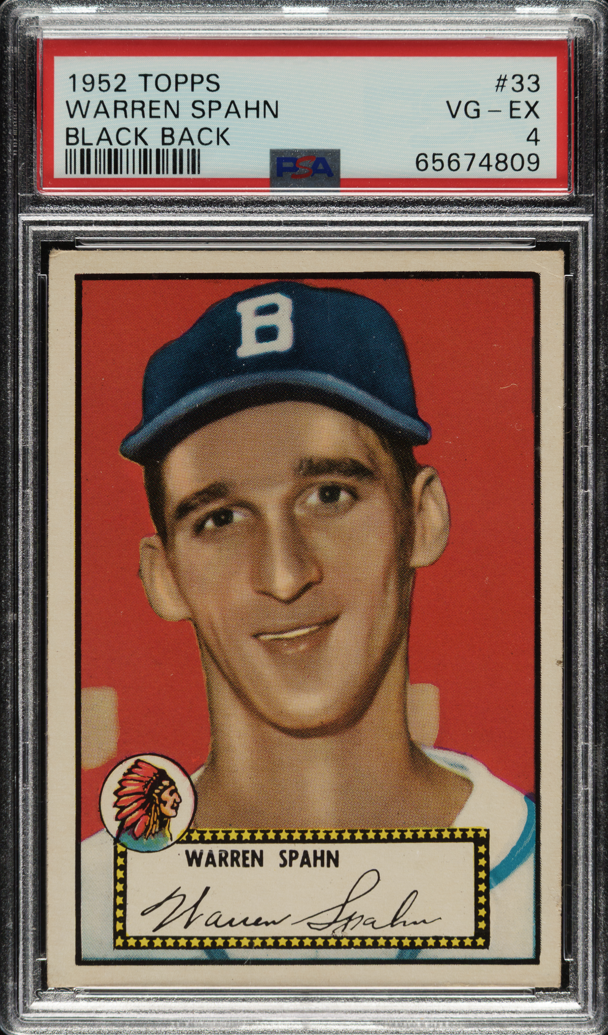 Graded VG-EX 4 by PSA. Boston Braves Hall of Famer Warren Spahn.