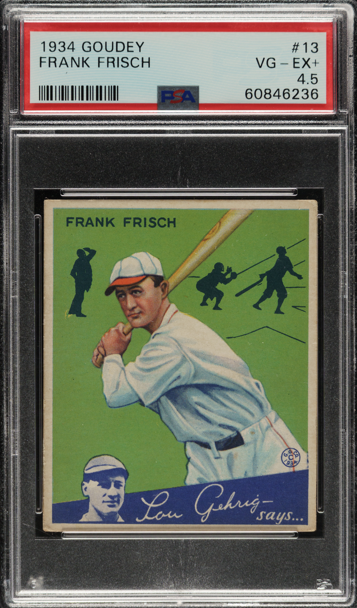 Graded VG-EX+ 4.5 by PSA. St. Louis Cardinals Hall of Famer Frank Frisch.