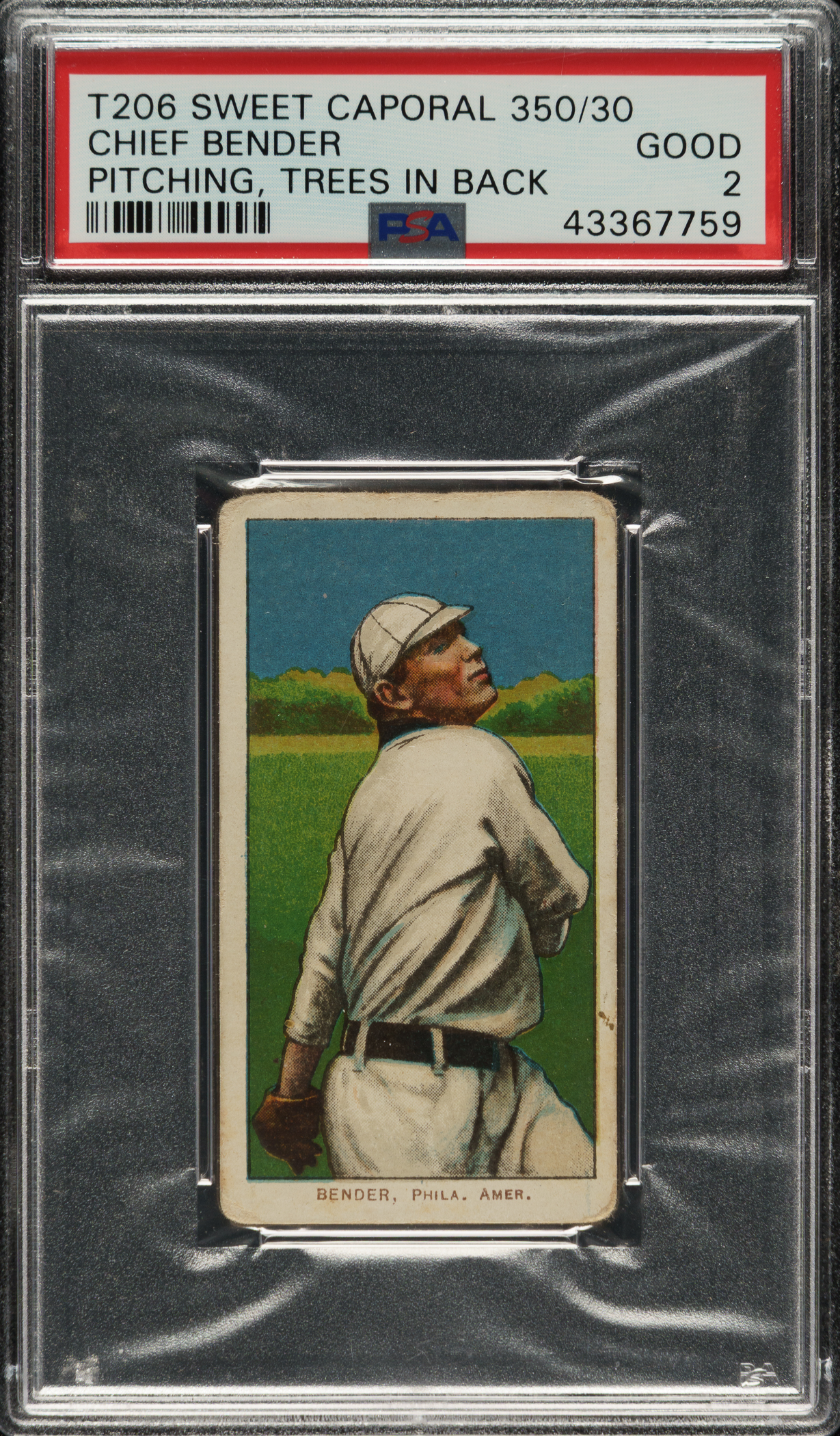Graded GOOD 2 by PSA. Philadelphia Athletics Hall of Famer Chief Bender.