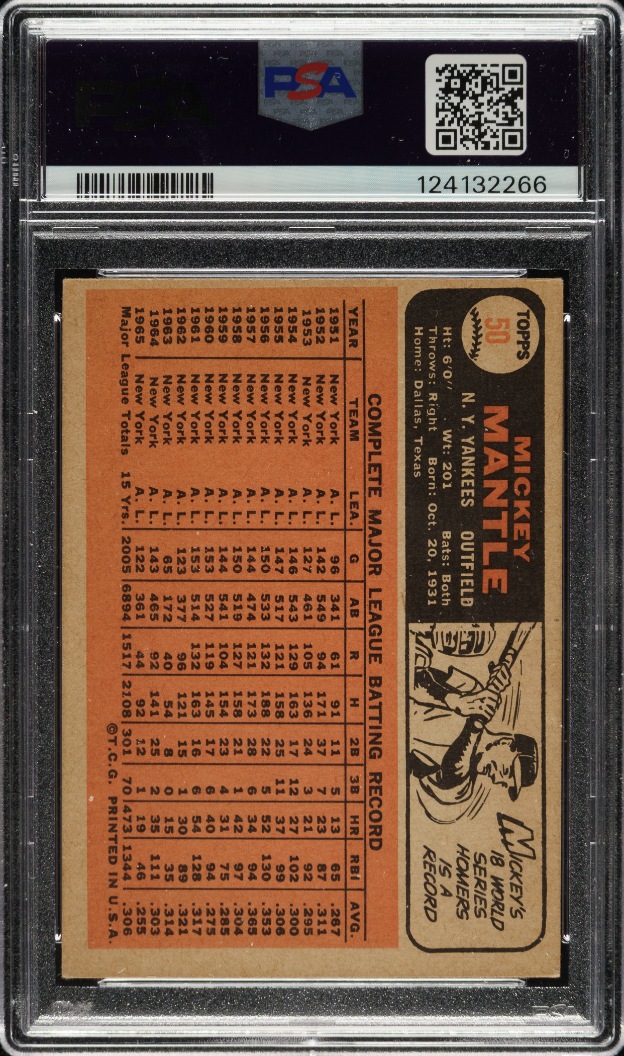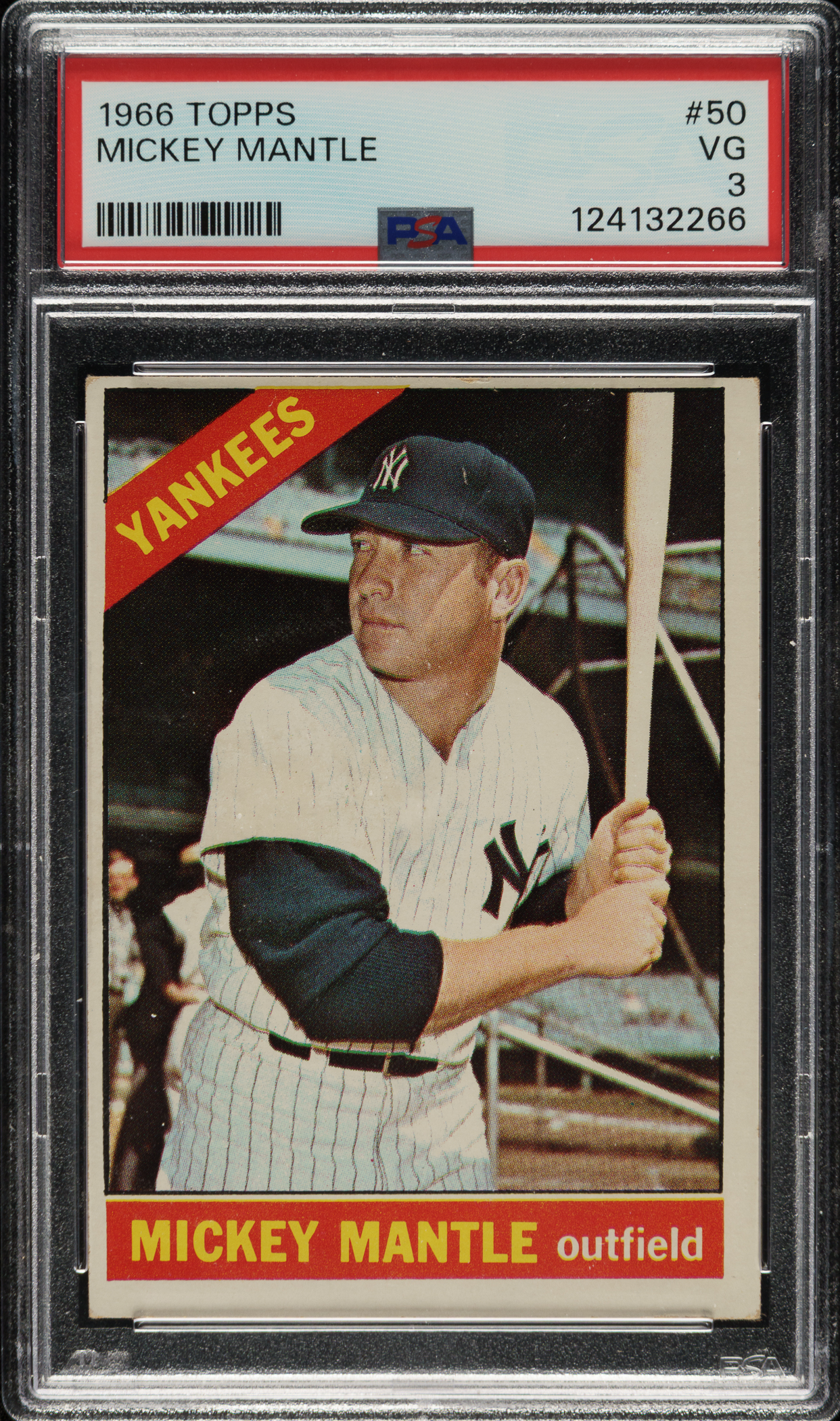 Lot # 2035: 1966 Topps #50 Mickey Mantle PSA VG 3