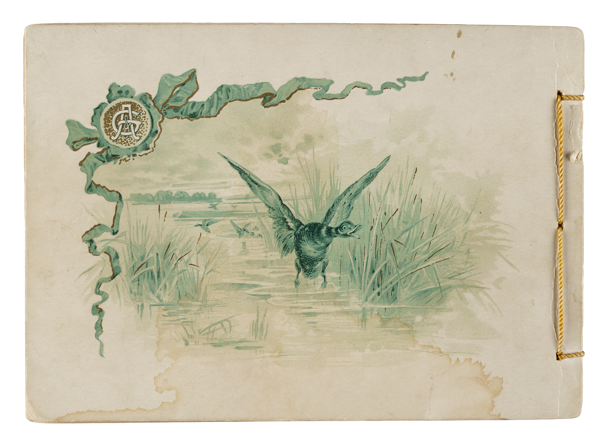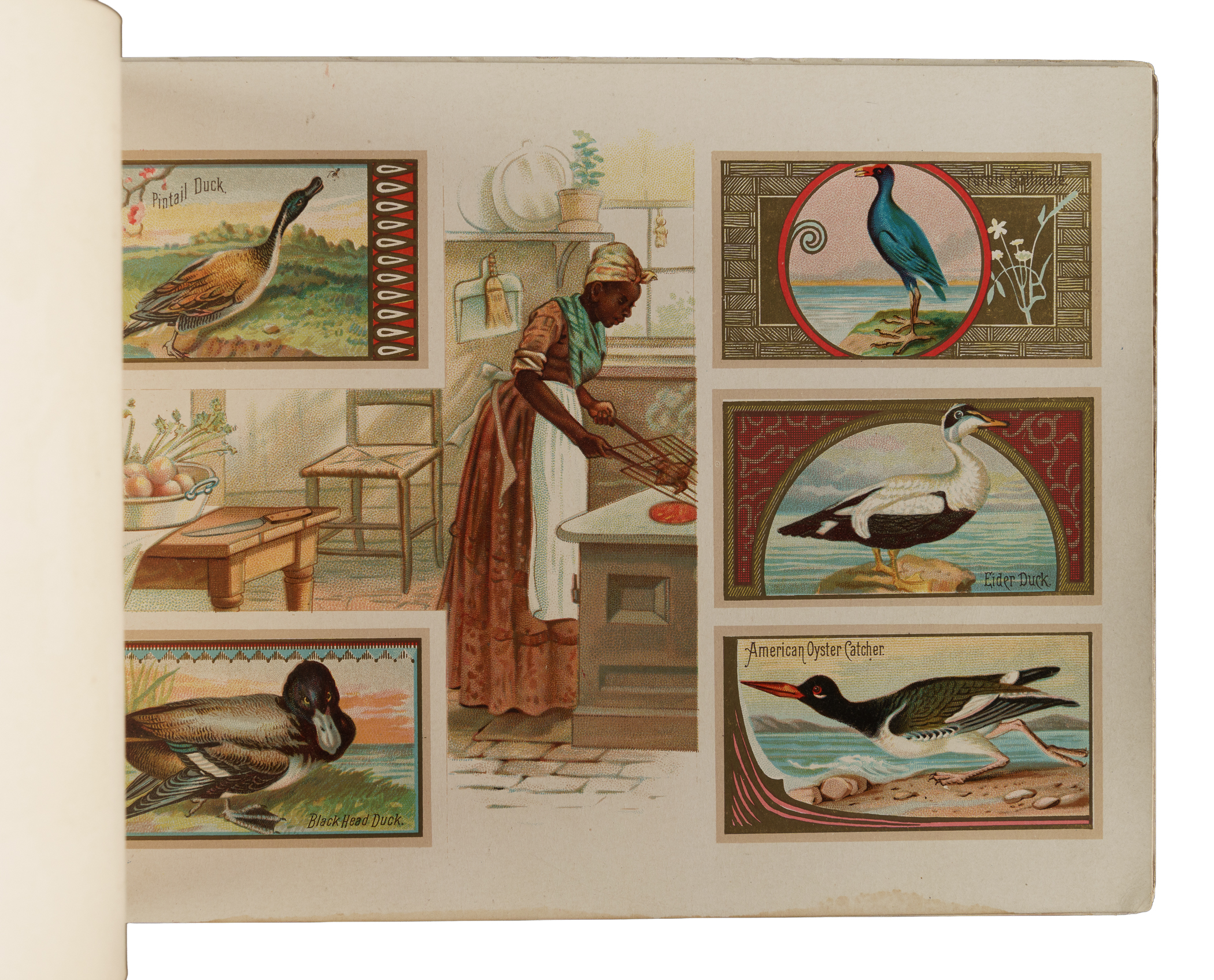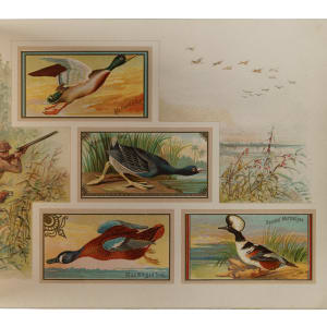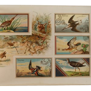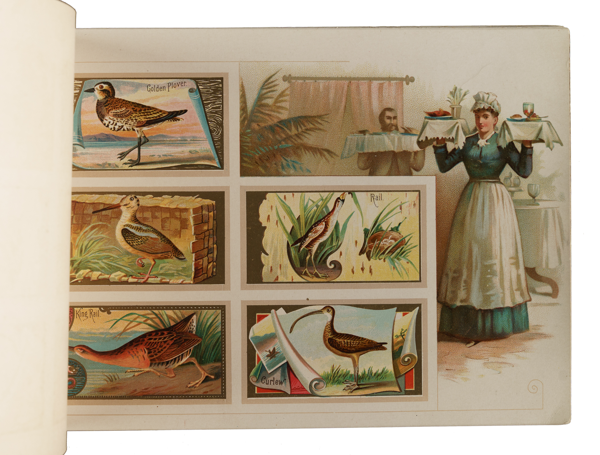 Extremely desirable 1889 Allen & Ginter "Game Birds" premium album featuring all 50 cards from the N2 Allen & Ginter set. This is a very substantial tobacco premium album featuring the entire "Game Birds" set. The tobacco companies spared no expense in producing these gorgeous full-color lithographic premium albums, available only by mail in exchange for coupons packed with tobacco products (in this case, Allen & Ginter). The album displays moderate handling wear, with light creasing along both covers and staining along the back cover. The interior pages are bright and crisp. A very appealing example of this classic, popular, and colorful premium album.