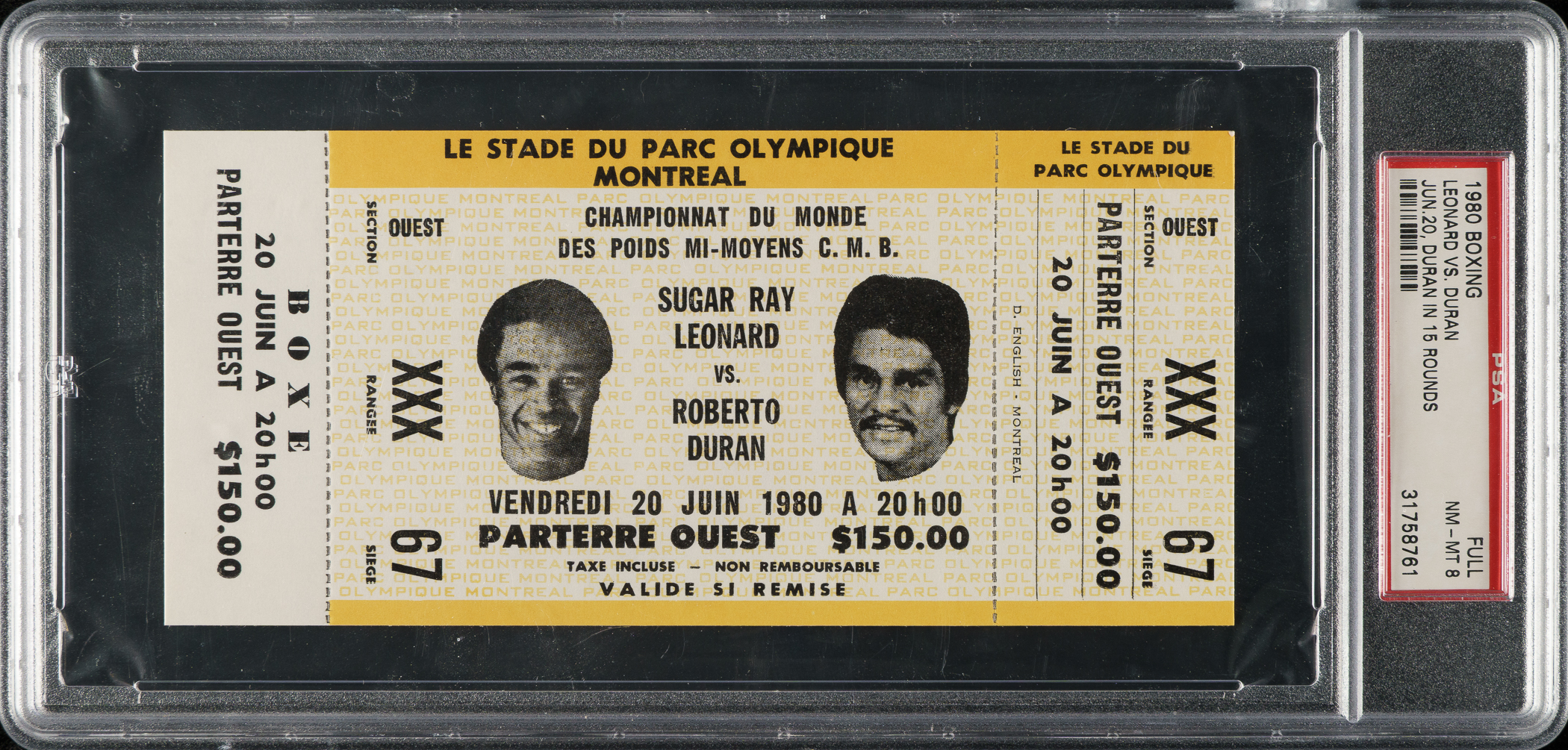 Graded NM-MT 8 by PSA. Boxing Hall of Famers Sugar Ray Robinson and Roberto Duran.