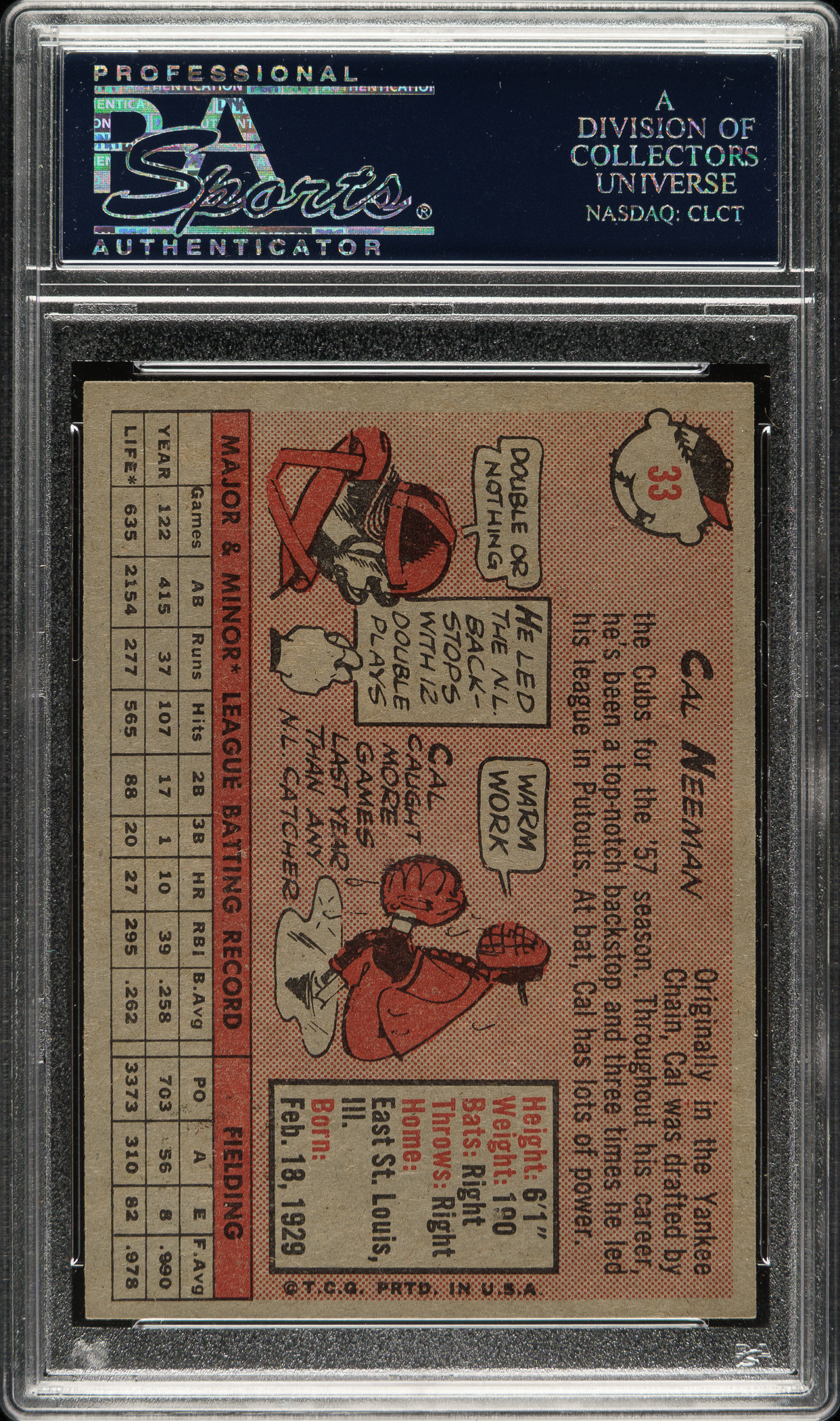 Lot # 1361: 1958 Topps #33 Cal Neeman PSA MINT 9 - Highest Graded!