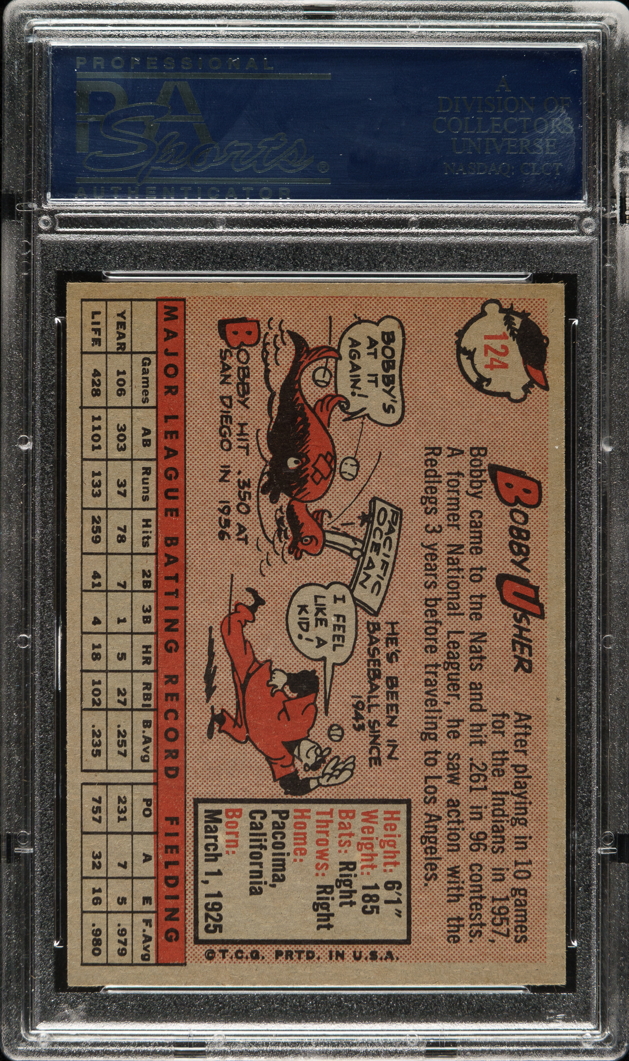 Lot # 1372: 1958 Topps #124 Bobby Usher PSA MINT 9 - Highest Graded!