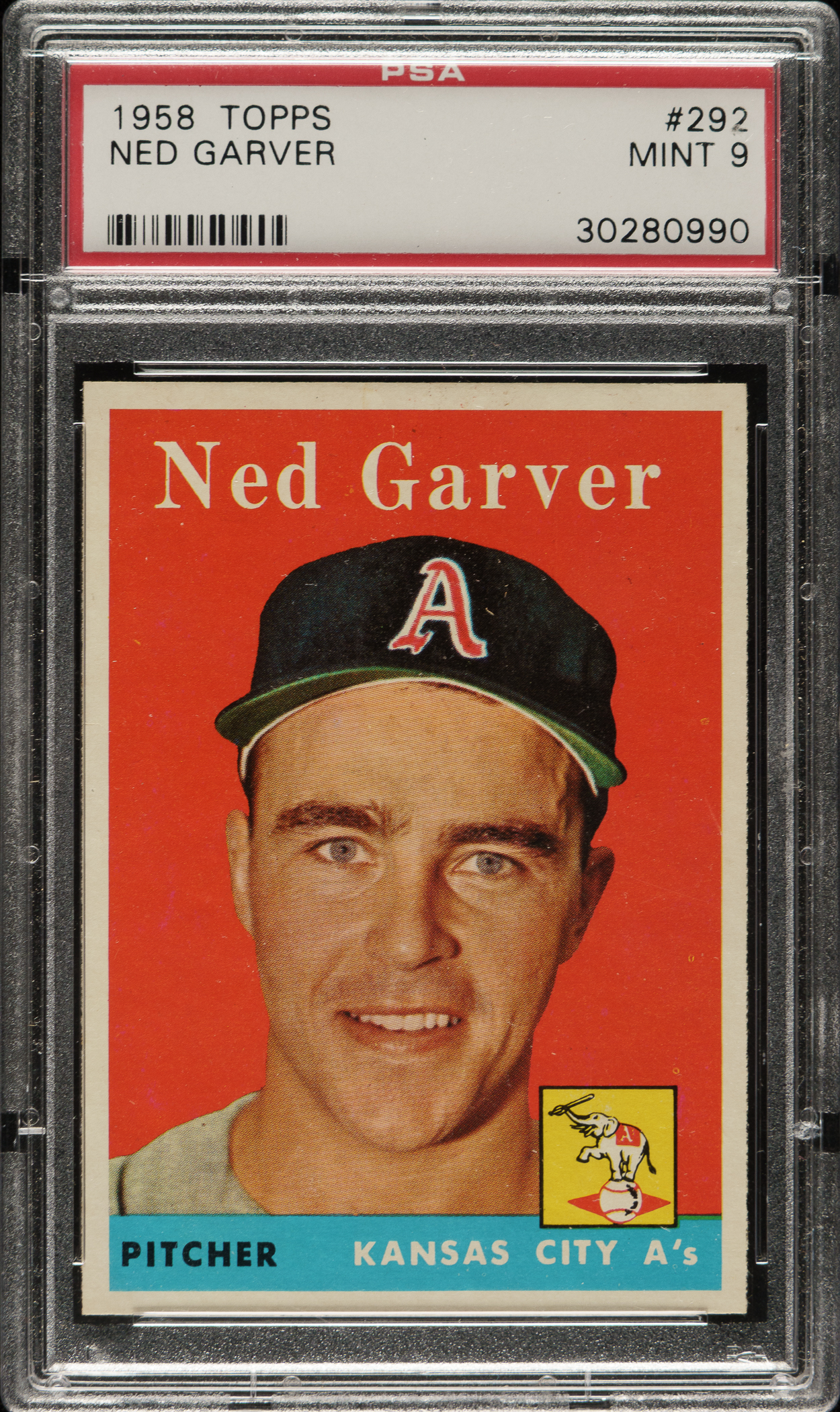 Graded MINT 9 by PSA. Kansas City Athletics. Only one example has been graded higher by PSA to date.
