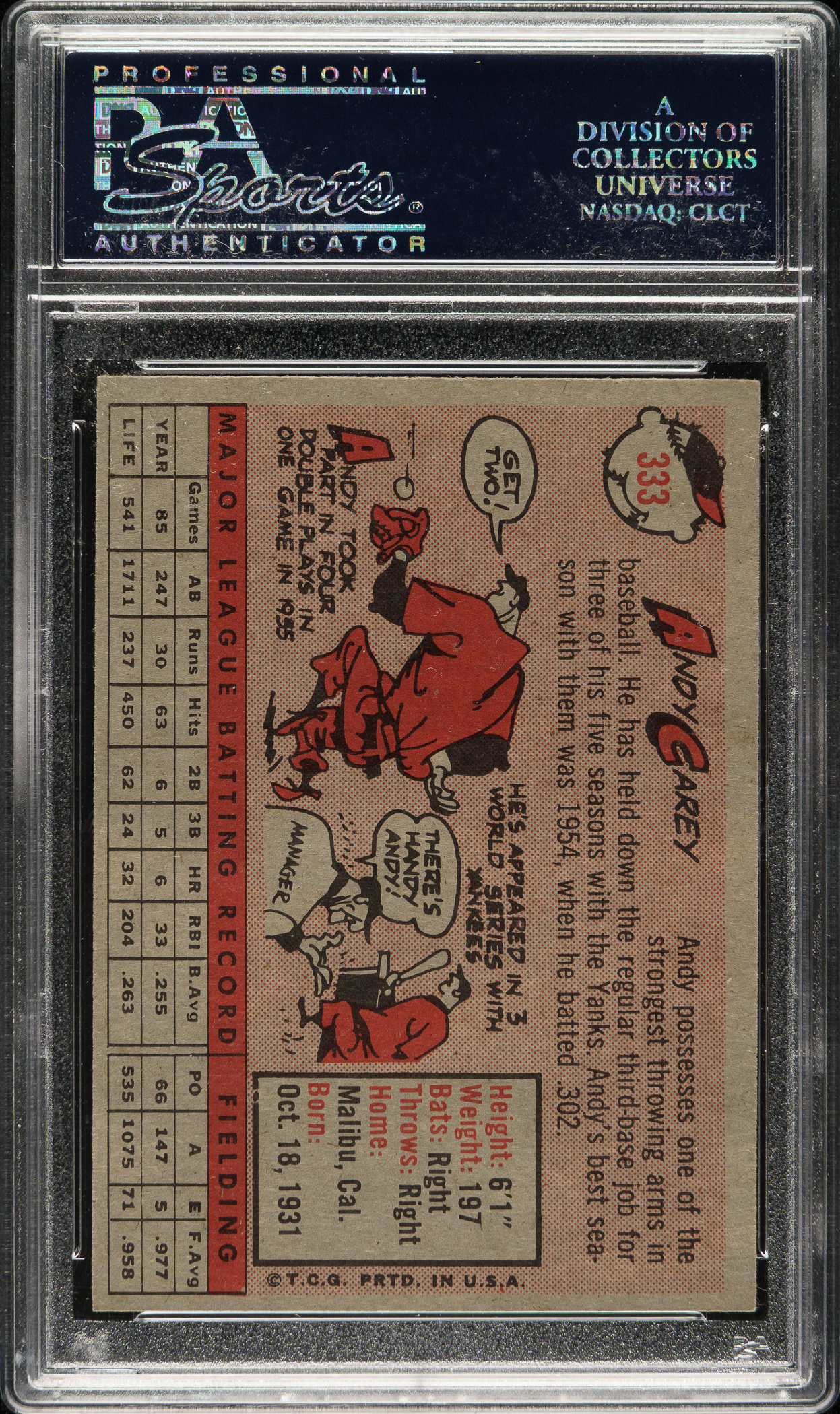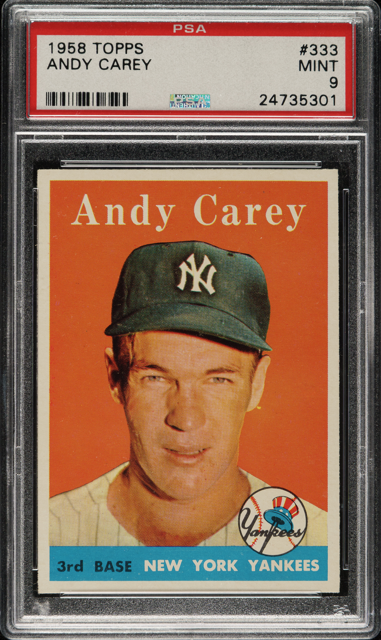 Graded MINT 9 by PSA. New York Yankees. Only one example has been graded higher by PSA to date.