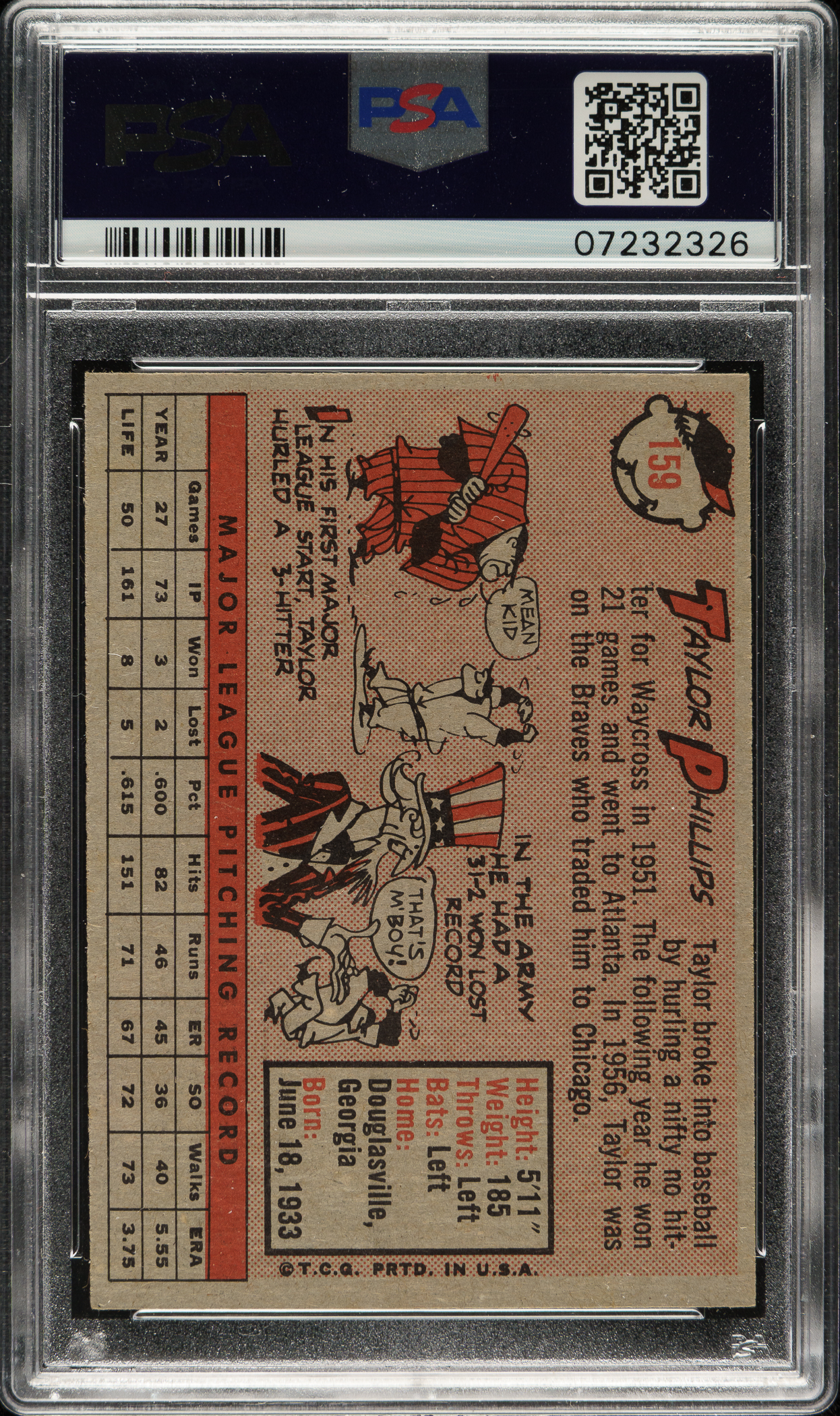 Lot # 1385: 1958 Topps #159 Taylor Phillips PSA MINT 9 - Highest Graded!