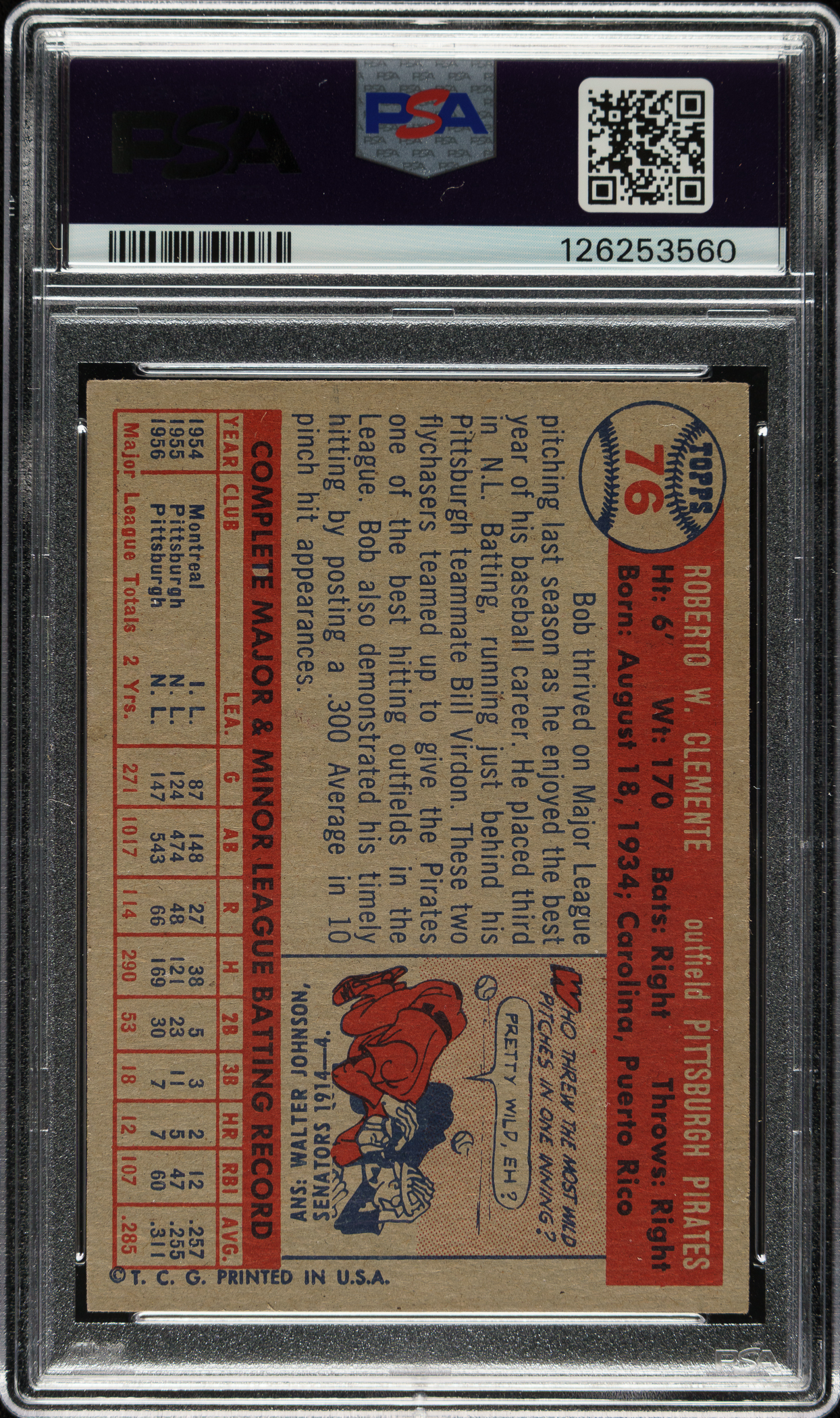 Lot # 1330: 1957 Topps #76 Roberto Clemente PSA NM 7