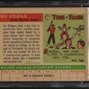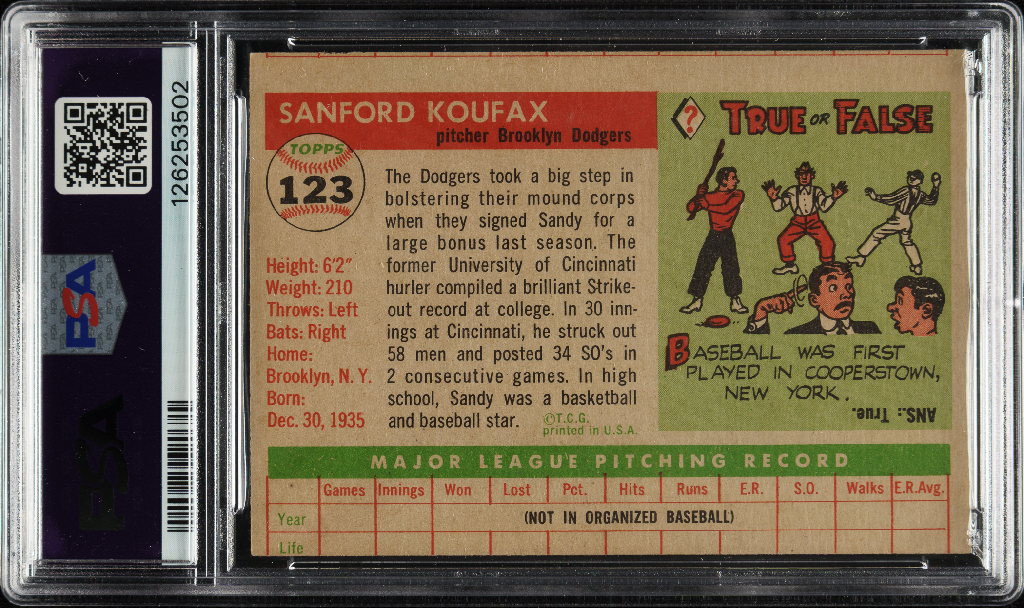 Graded EX-MT 6 (MC) by PSA (submitted by REA). Brooklyn Dodgers Hall of Famer Sandy Koufax.