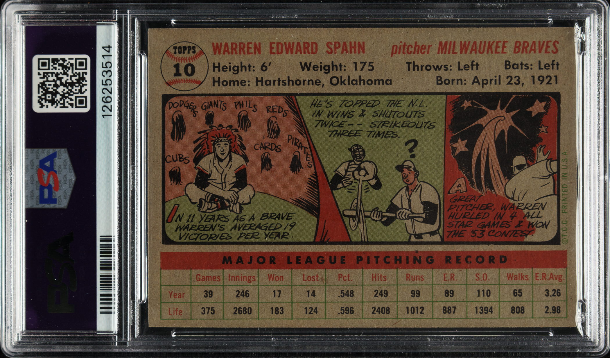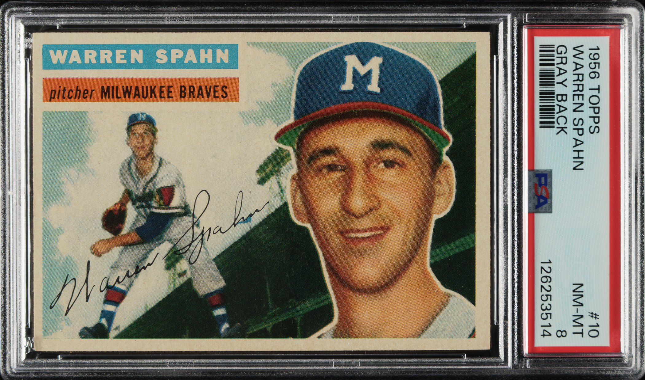 Graded NM-MT 8 by PSA (submitted by REA). Milwaukee Braves Hall of Famer Warren Spahn.