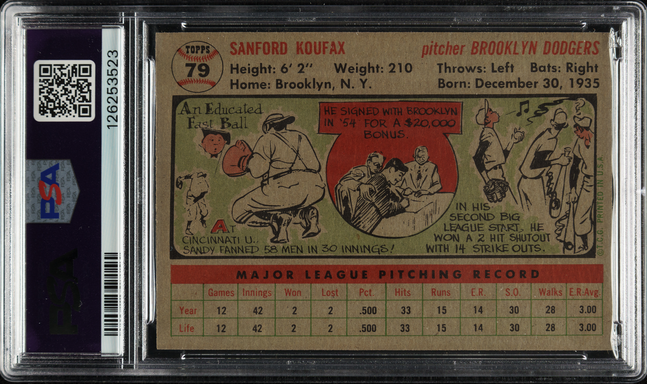 Graded NM 7 by PSA (submitted by REA). Brooklyn Dodgers Hall of Famer Sandy Koufax.