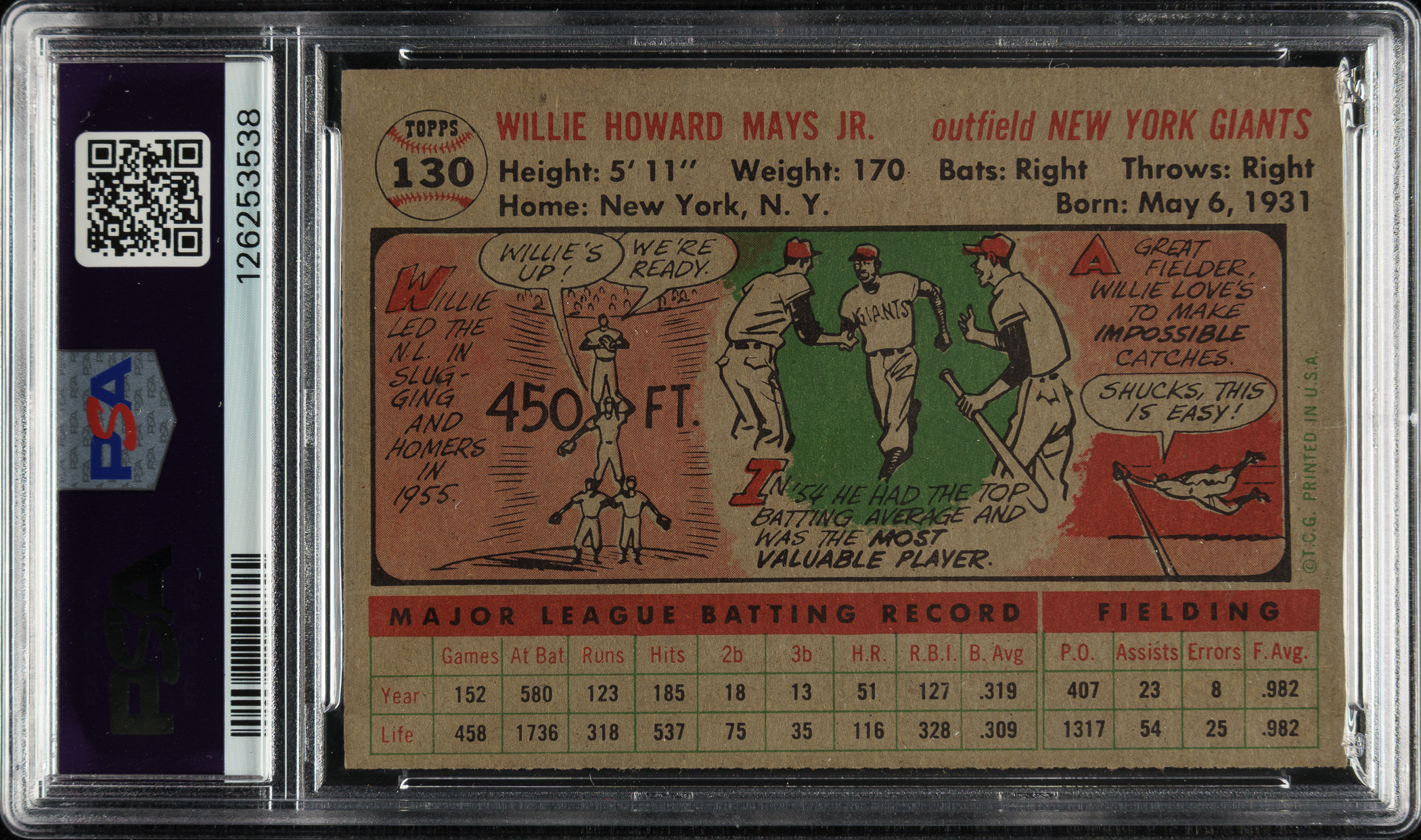 Graded EX-MT 6 by PSA (submitted by REA). New York Giants Hall of Famer Willie Mays.