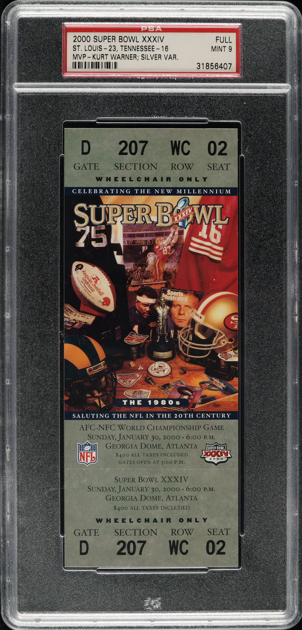 Graded MINT 9 by PSA. St. Louis Rams football Hall of Famer Kurt Warner.