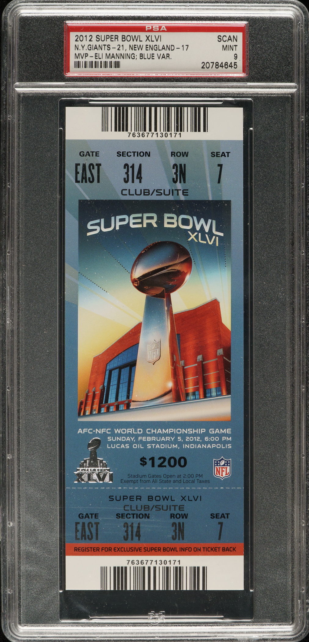 Graded MINT 9 by PSA. New York Giants vs New England Patriots.