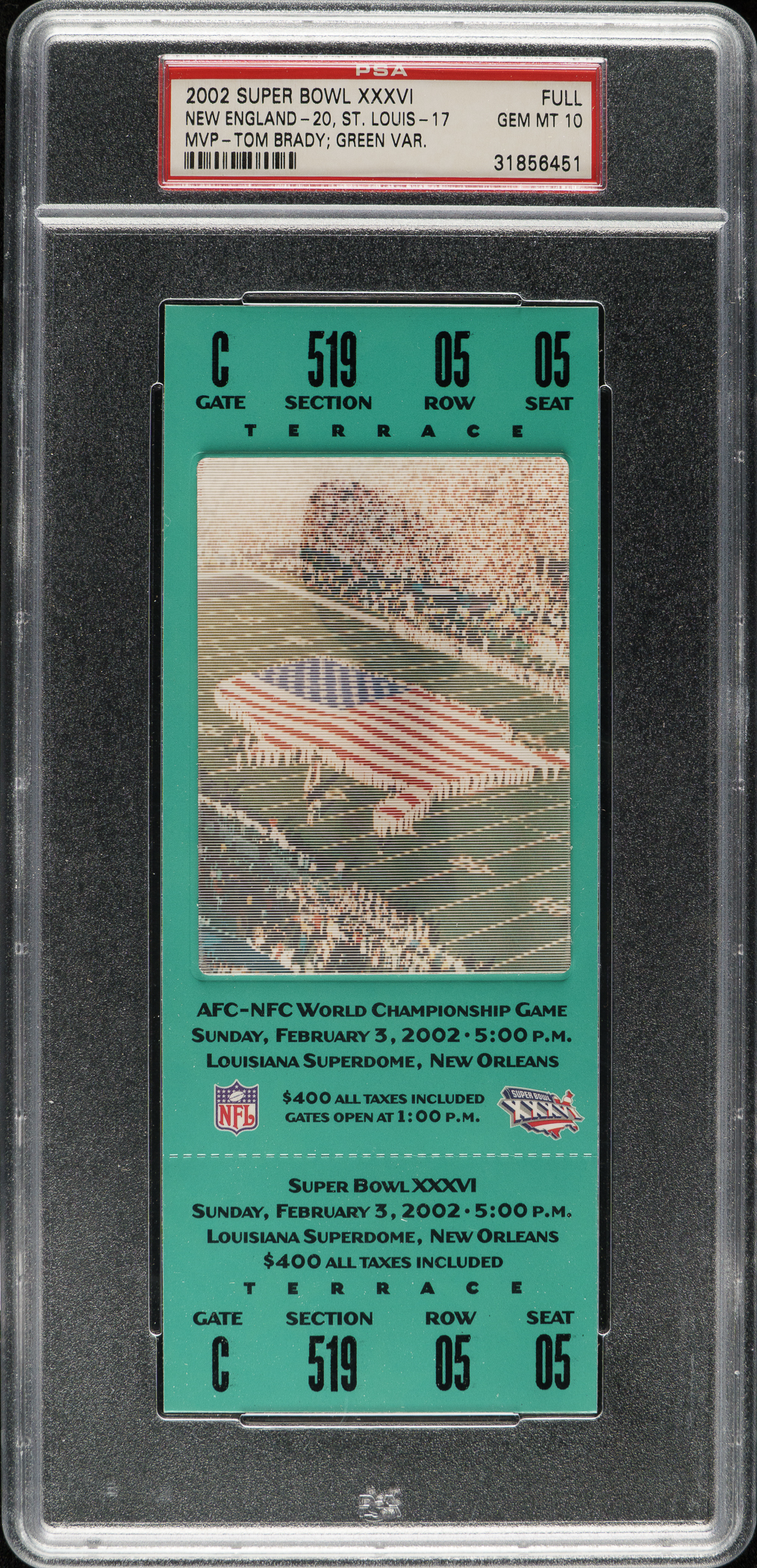 Graded GEM MINT 10 by PSA. New England Patriots vs. St. Louis Rams.