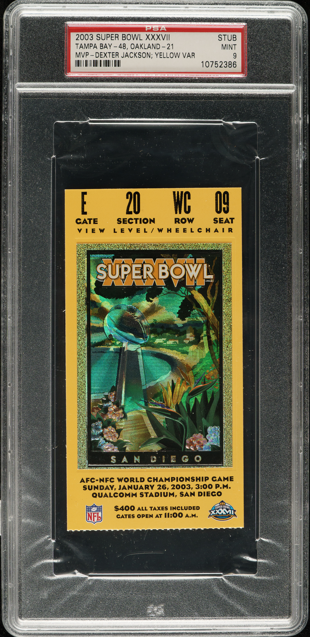Graded MINT 9 by PSA. Tampa Bay Buccaneers vs. Oakland Raiders.