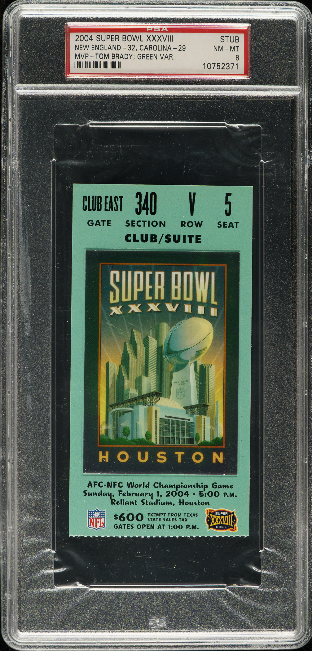 Graded NM-MT 8 by PSA. New England Patriots vs. Carolina Panthers.
