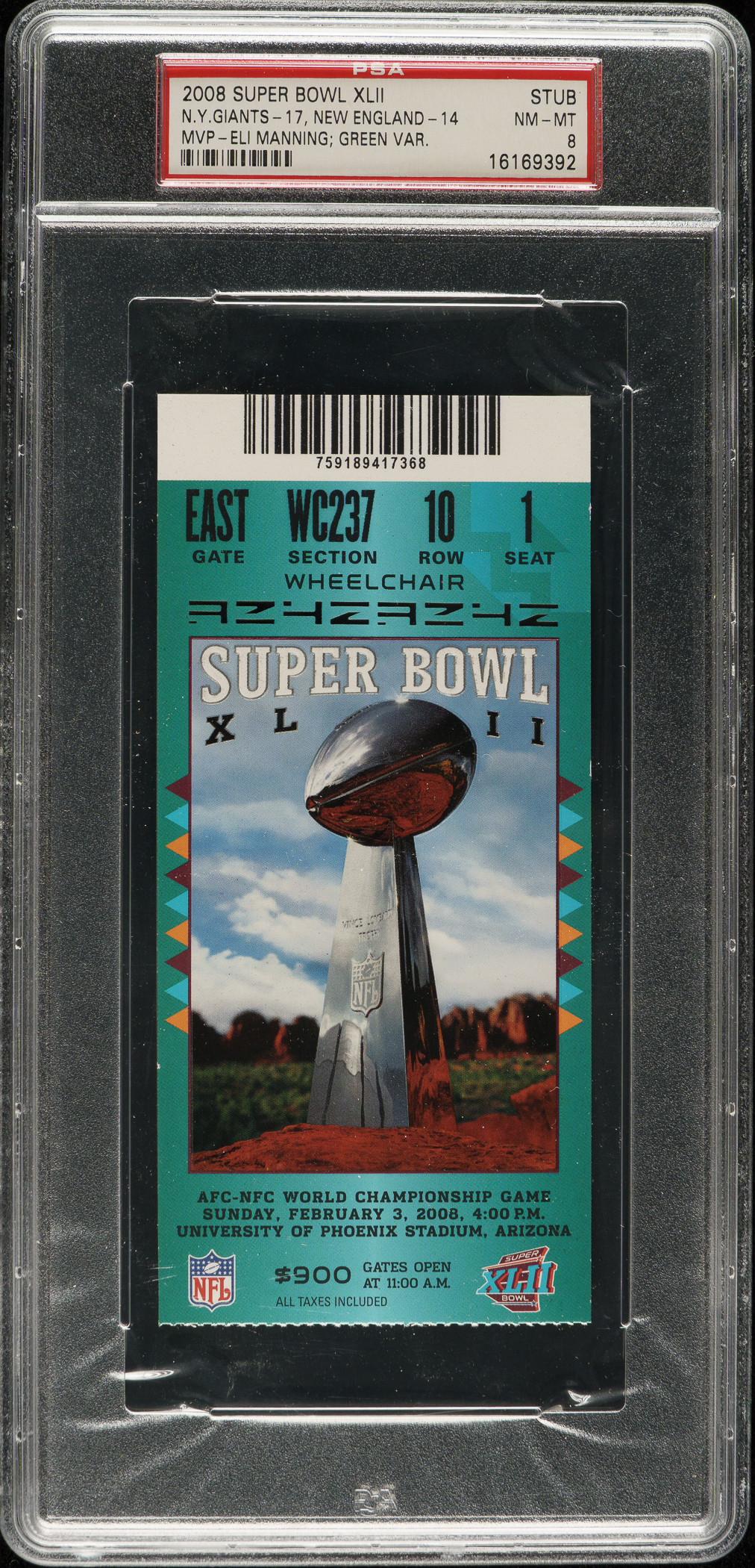 Graded NM-MT 8 by PSA. New York Giants vs. New England Patriots.