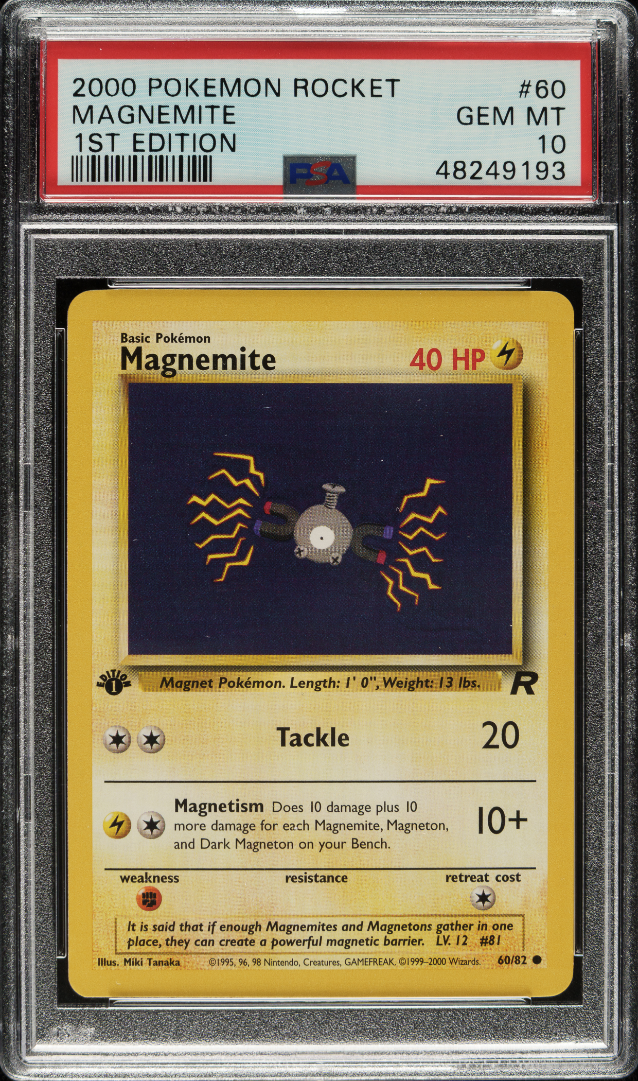 Lot # 3509: 2000 Pokemon Rocket 1st Edition #60 Magnemite PSA GEM MINT 10