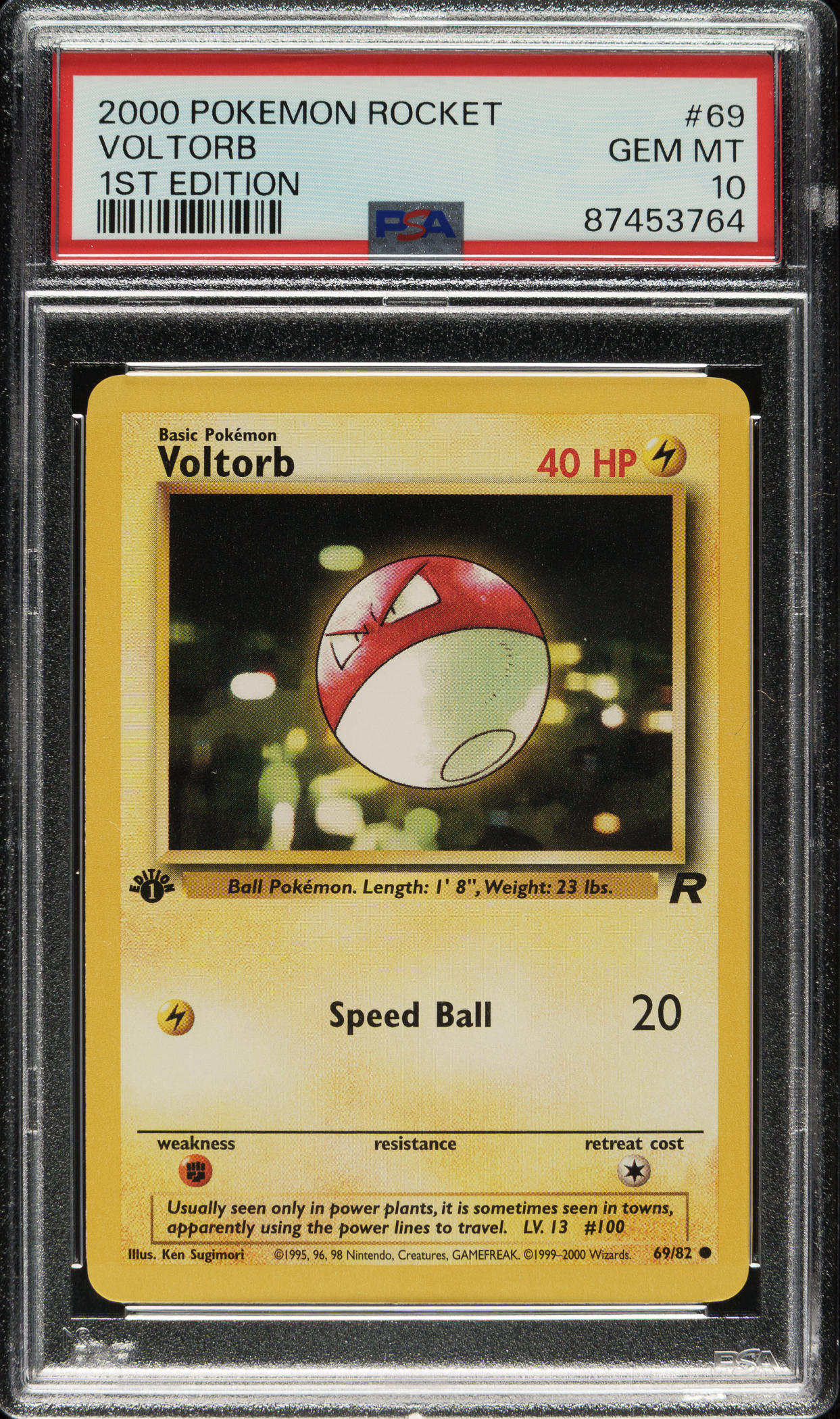 Lot # 3511: 2000 Pokemon Rocket 1st Edition #69 Voltorb PSA GEM MINT 10