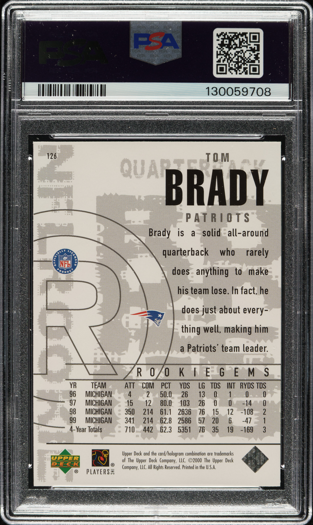 Graded NM 7 by PSA. New England Patriots.