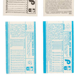 Presented is a very attractive and mostly high-grade trio of complete sets of Kellogg's 3-D baseball spanning the years 1980 to 1983. This collection consists of the following: 1) 1980 Kellogg's 3-D Complete Set (60): Ranging from Nr/Mt to Mint (averaging Nr/Mt-Mt), with 10% lesser due to cracking (including Bench, Carlton, and Seaver). 2) 1982 Kellogg's 3-D Complete Set (64): Condition ranges from Ex-Mt to Mint (averaging Nr/Mt-Mt). 3) 1983 Kellogg's 3-D Complete Set (60): Condition ranges from Ex-Mt to Mint (averaging Nr/Mt+), with 13% lesser due mostly to cracking. Total: 184 cards.