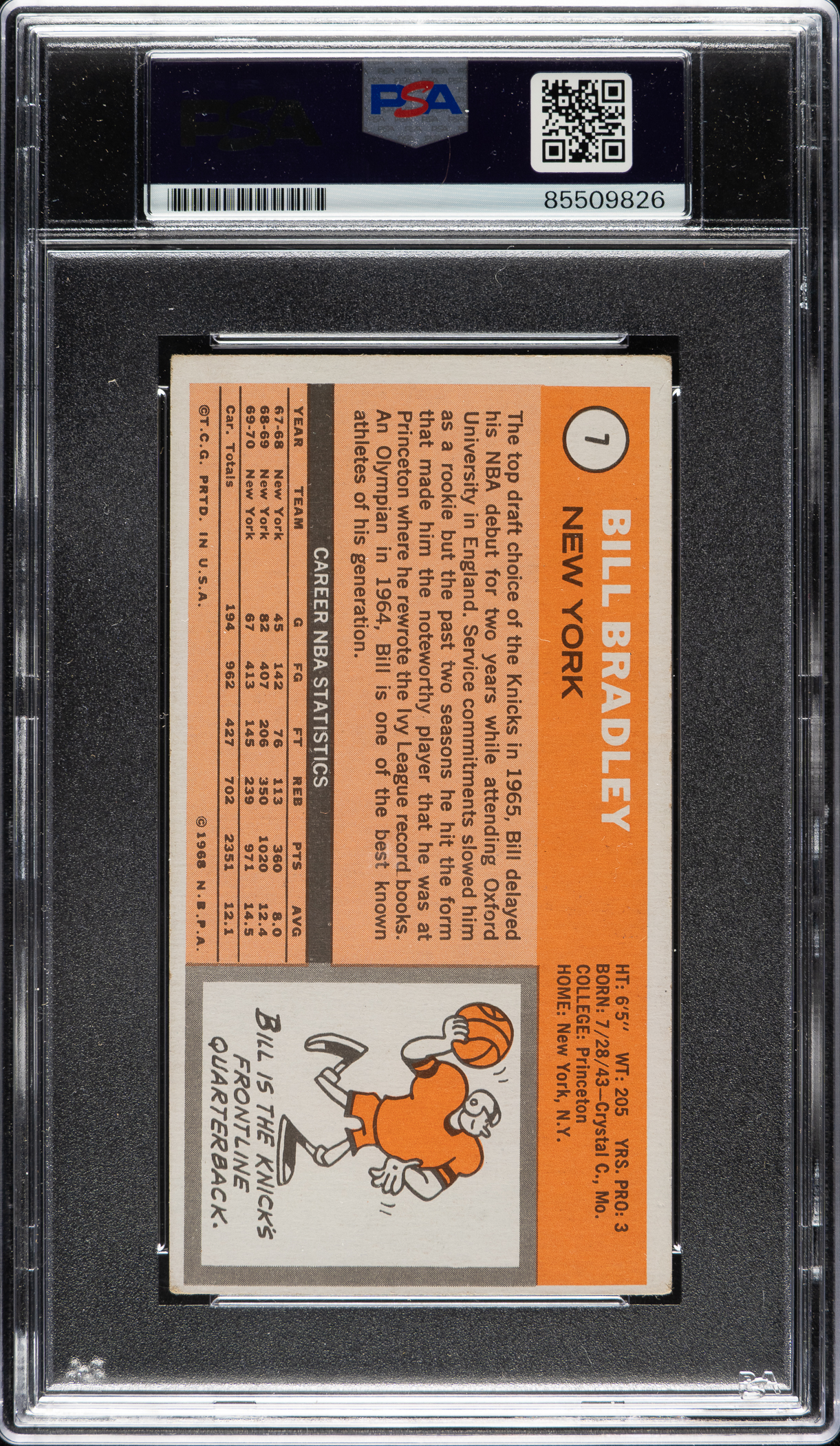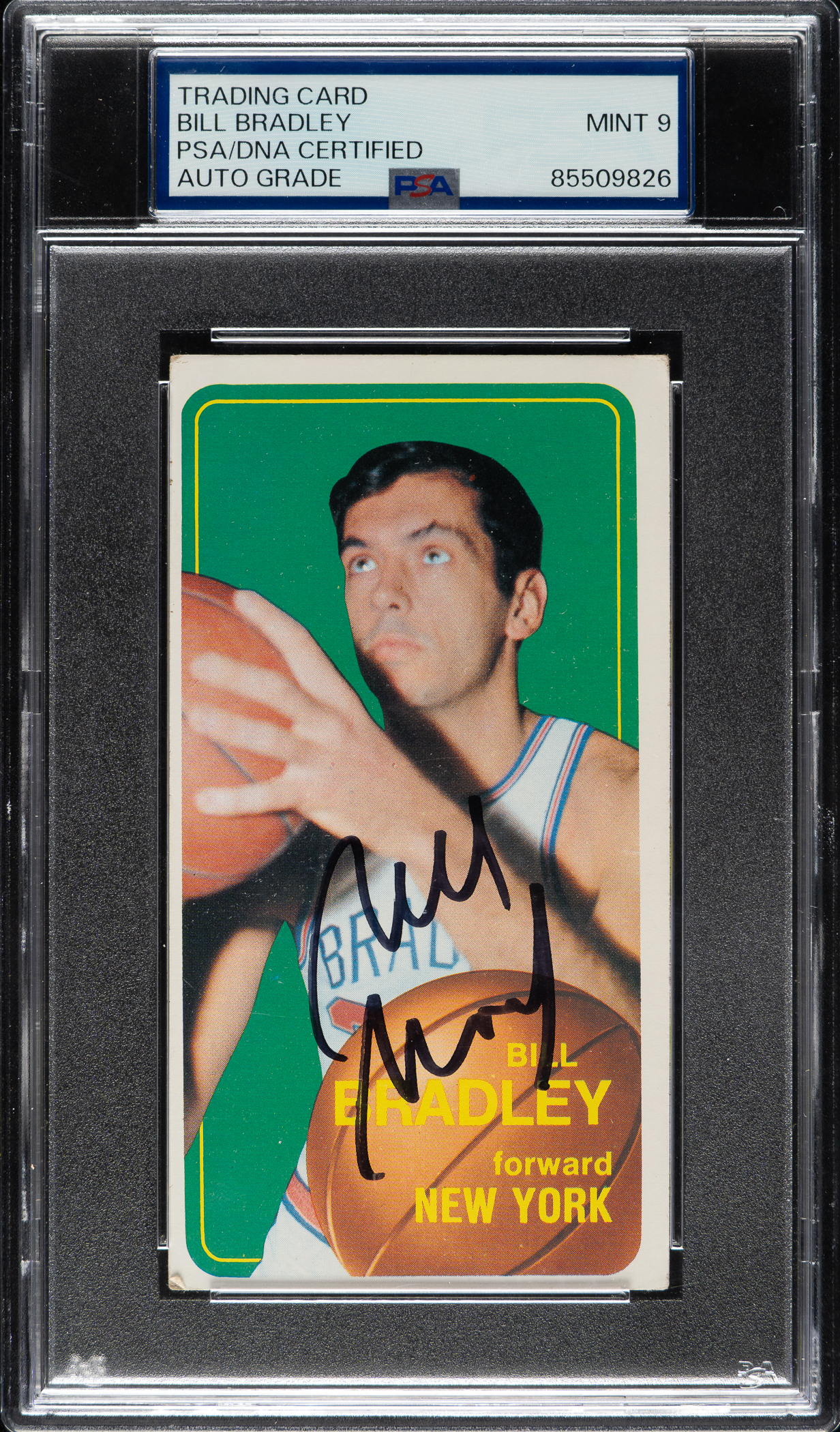 PSA/DNA has encapsulated the card, grading the signature MINT 9. New York Knicks basketball Hall of Famer Bill Bradley.