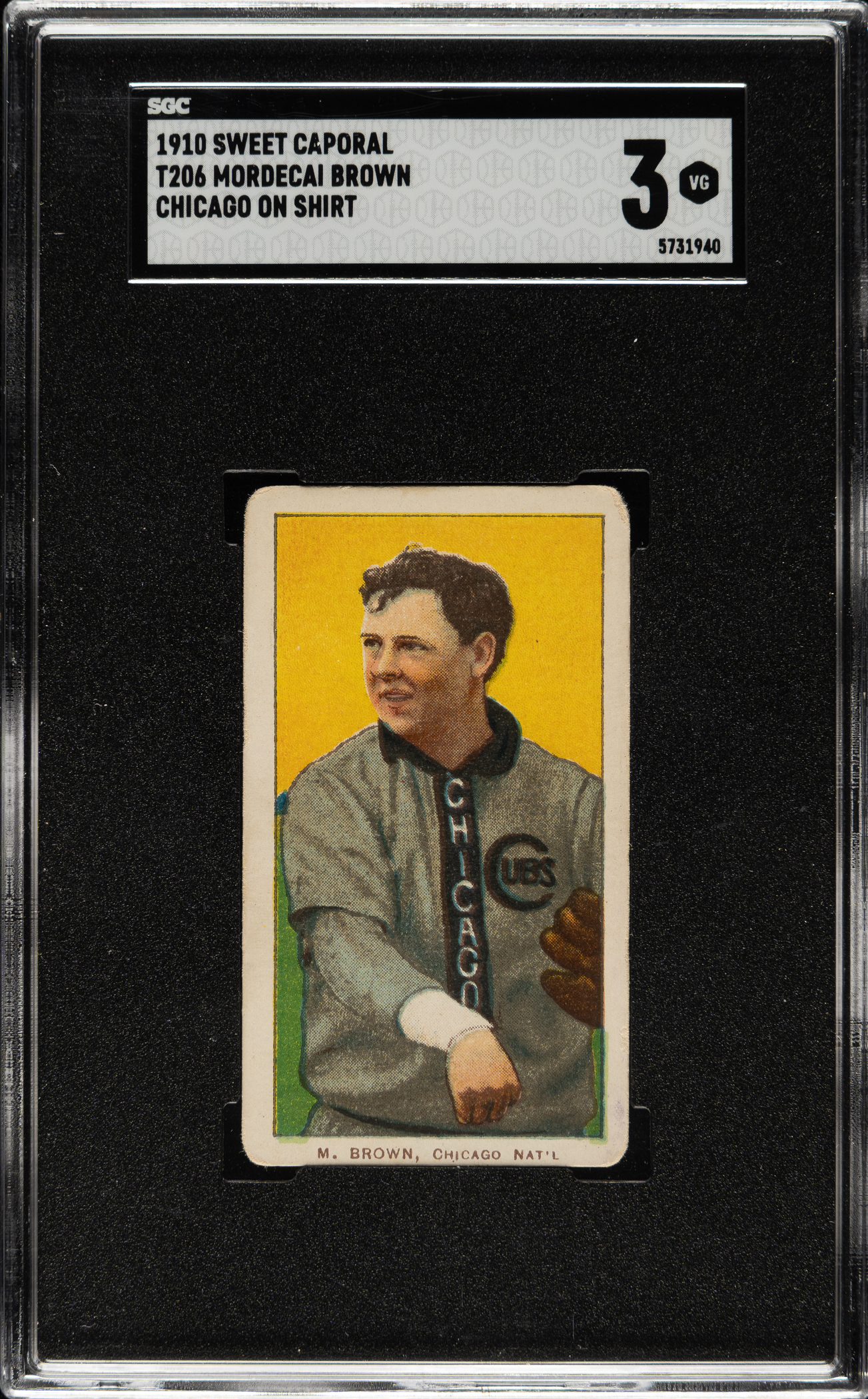 Graded VG 3 by SGC. Chicago Cubs Hall of Famer Mordecai Brown.