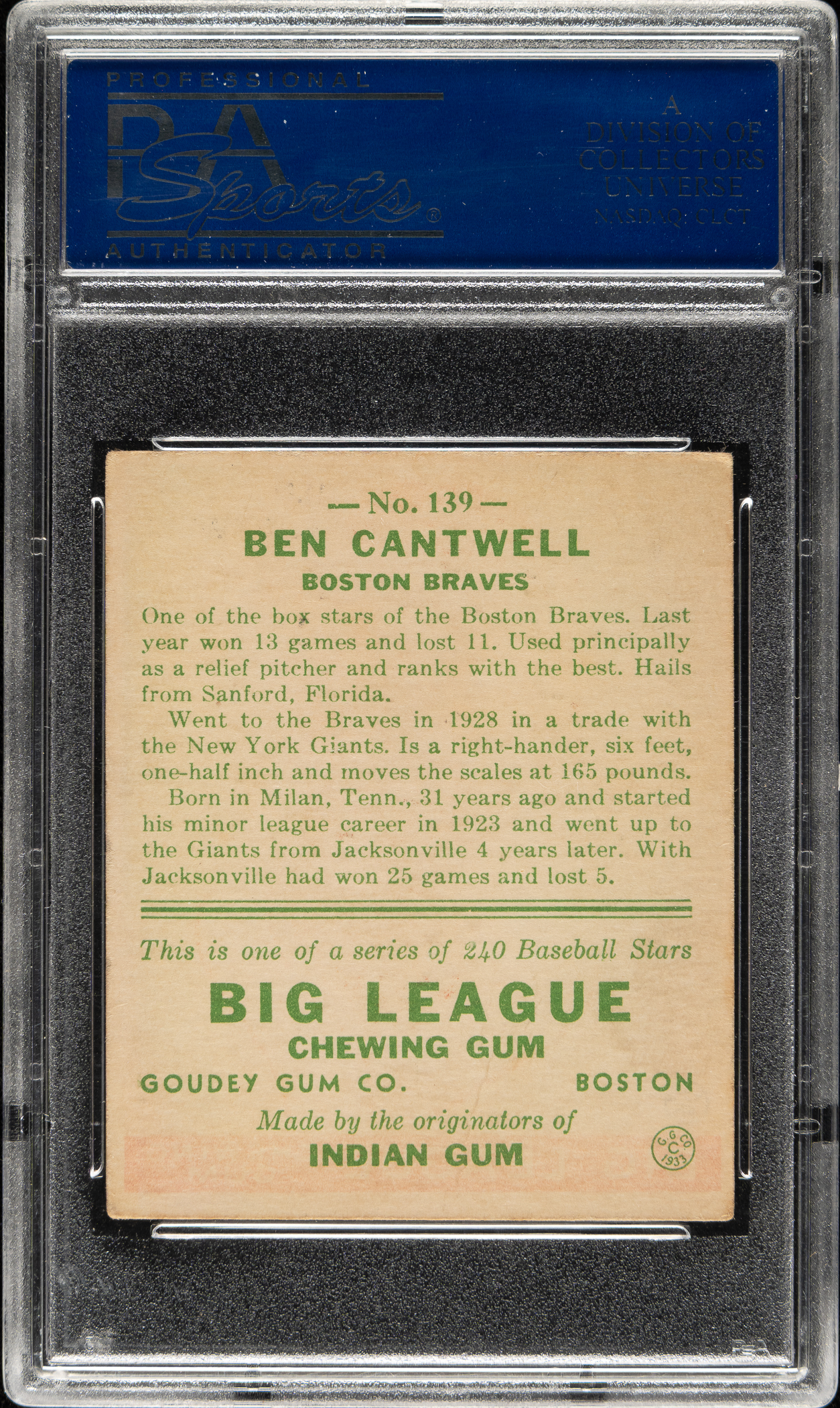 Graded EX 5 by PSA. Boston Braves.