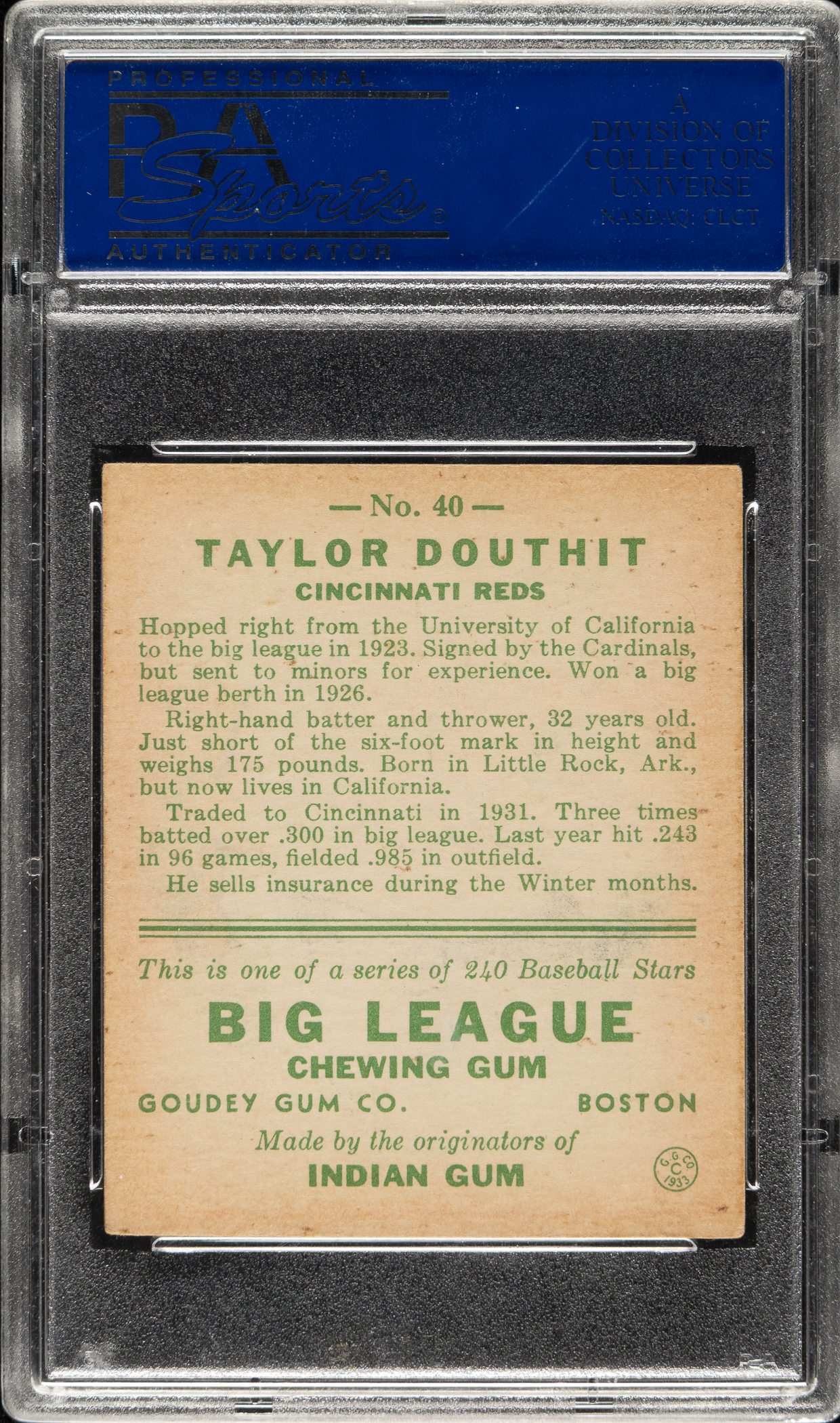 Lot # 1085: 1933 R319 Goudey #40 Taylor Douthit PSA EX 5