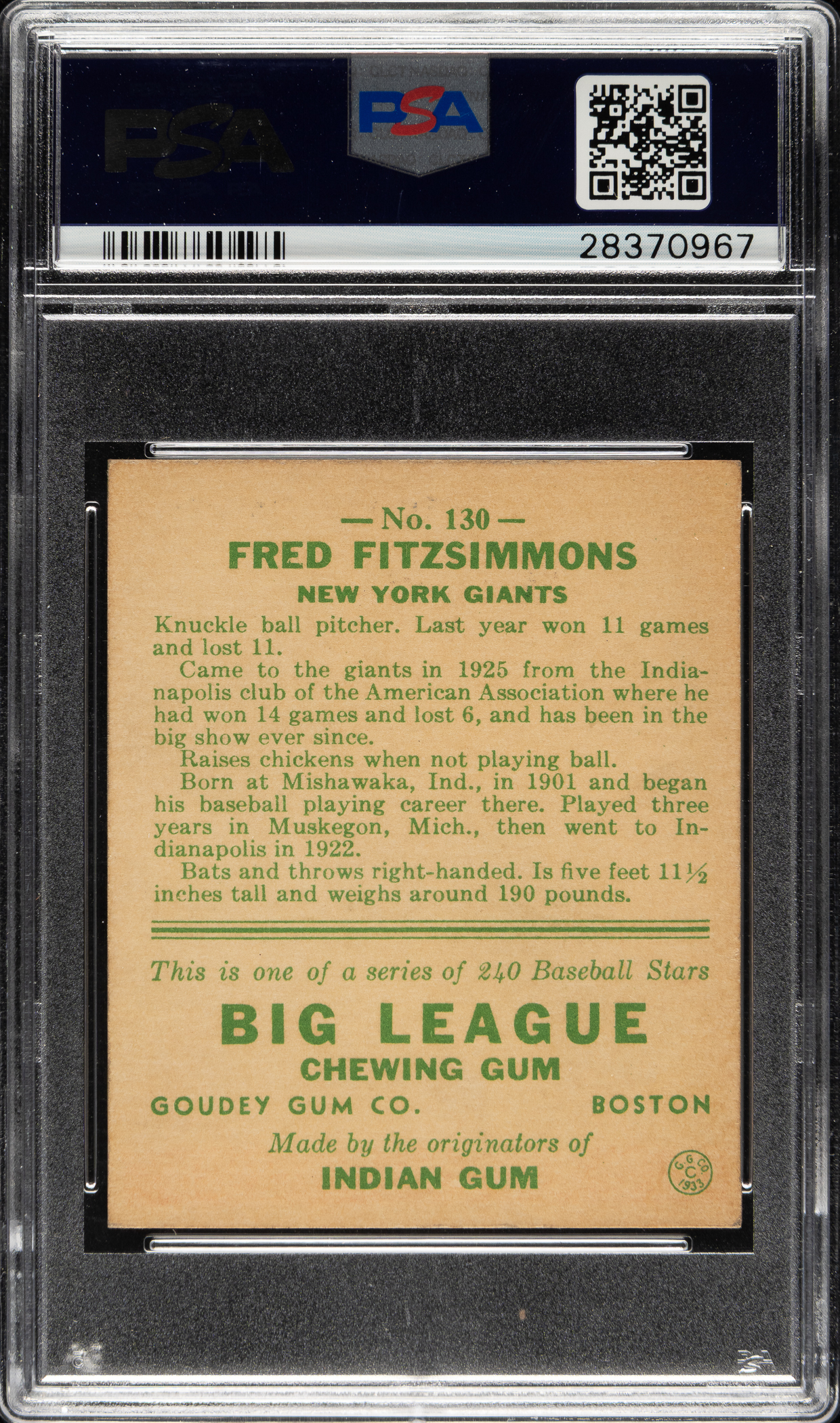 Graded EX 5 by PSA. New York Giants.