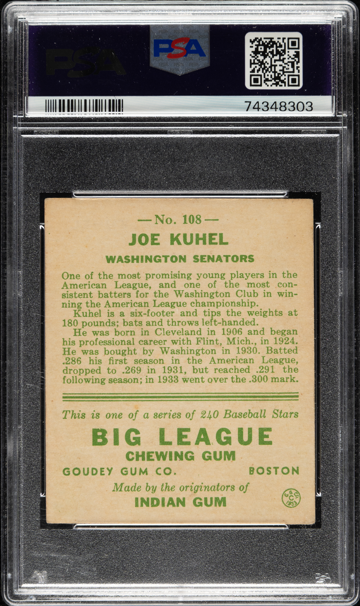 Graded VG-EX+ 4.5 by PSA. Washington Senators.