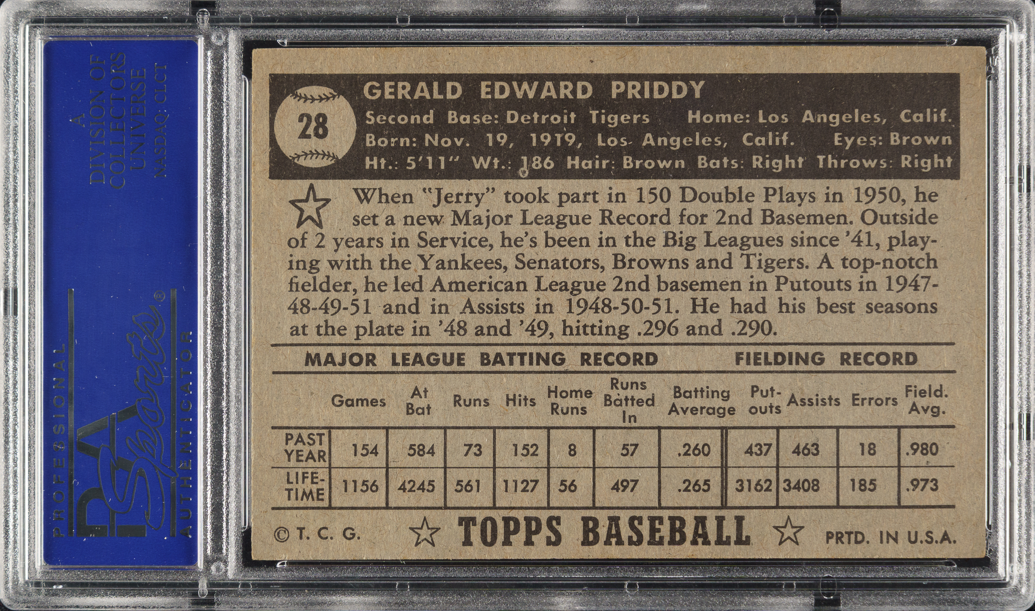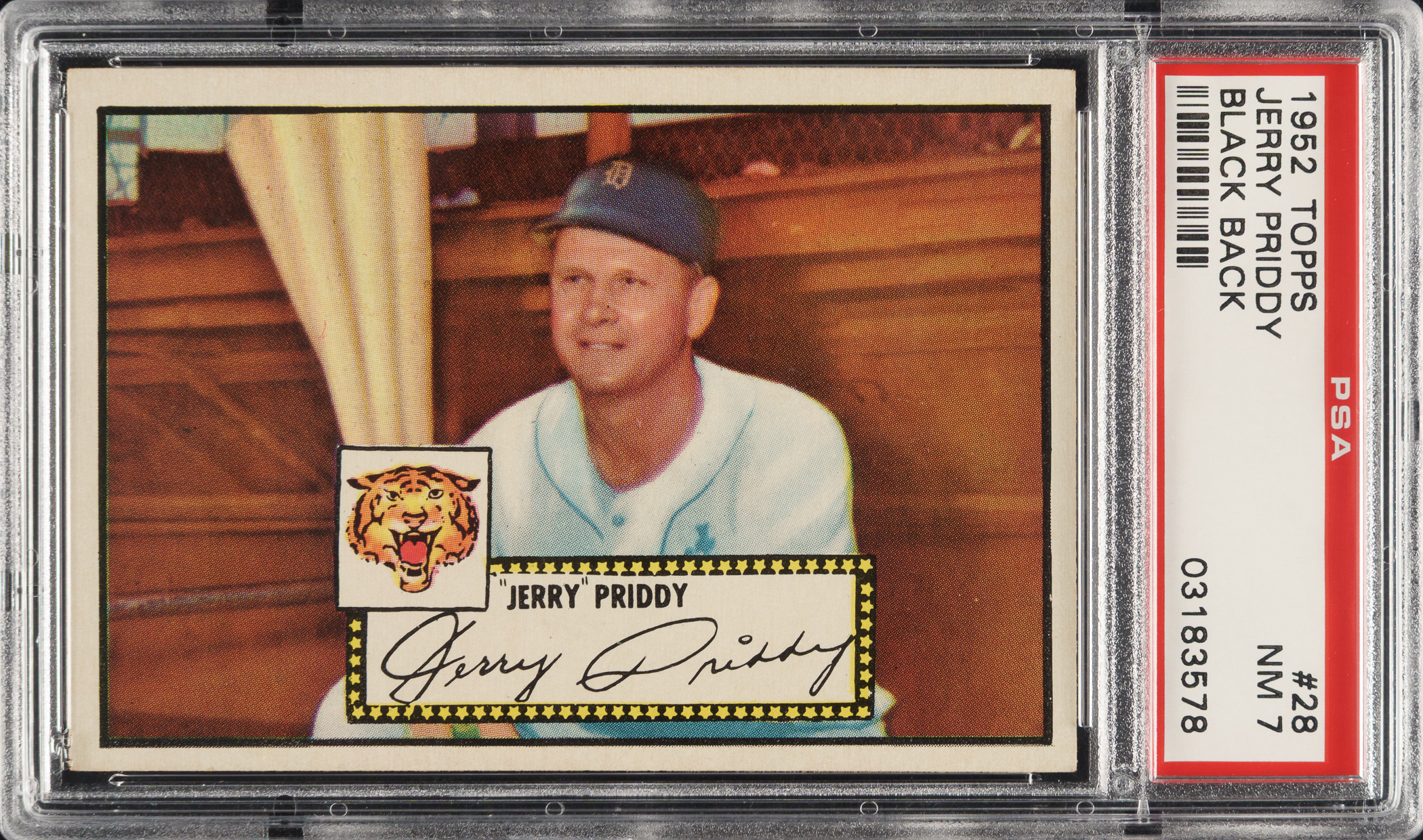Lot # 1457: 1952 Topps #28 Jerry Priddy Black Back PSA NM 7