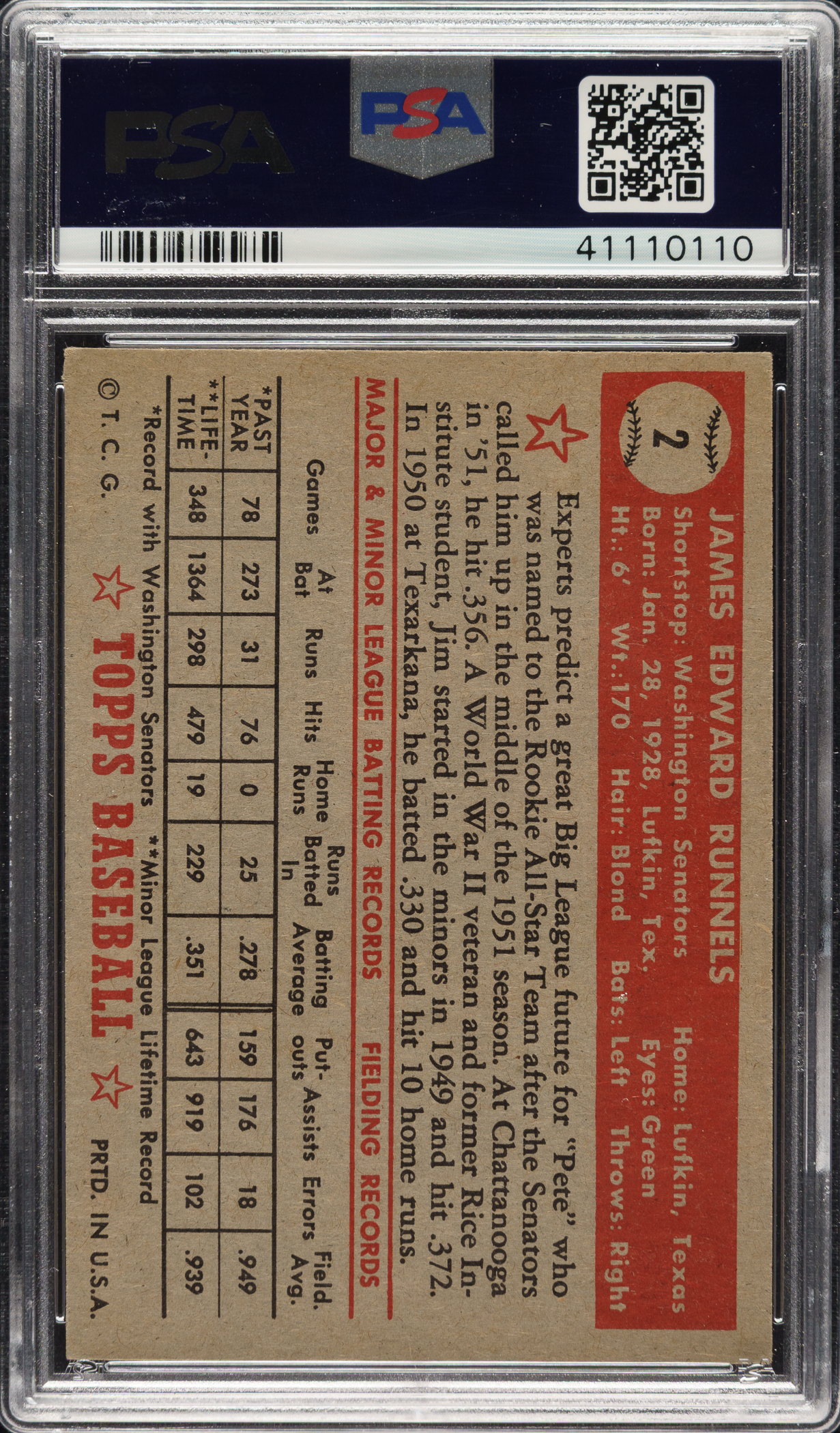 Graded EX-MT 6 by PSA. Washington Senators.